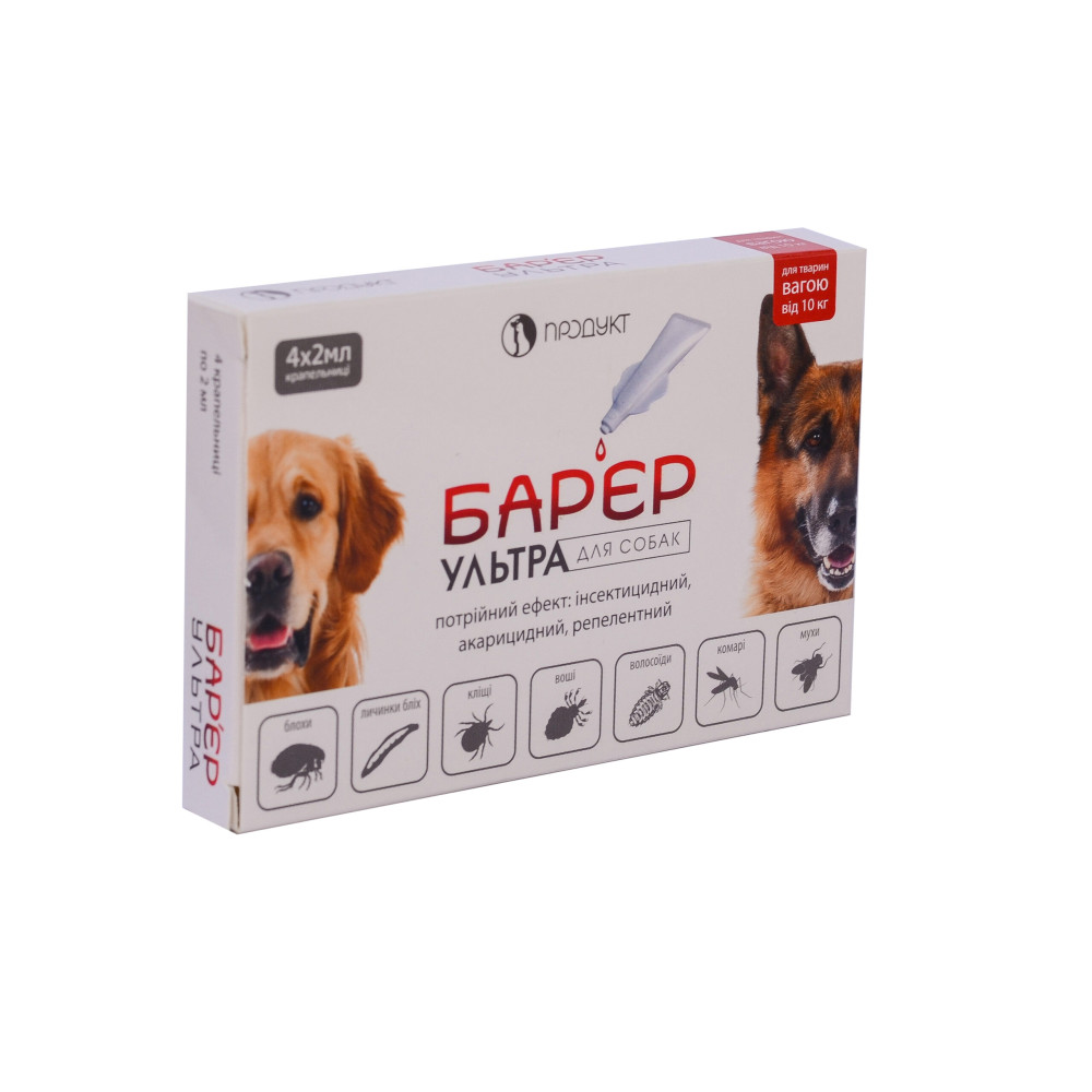 Профілактика та лікування собак при ураженні ектопаразитами: блохами (Ctenocephalides spp.); волосоїдами (Trichodectes canis); вошами (Linognathus setosus); паразитиформними кліщами (Ixodes spp., Dermacentor spp., Rhipicephalus spp.); відлякування кровосисних двокрилих комах – комарів, ґедзів, мошок, мокреців, москитів, зоофільних мух тощо.