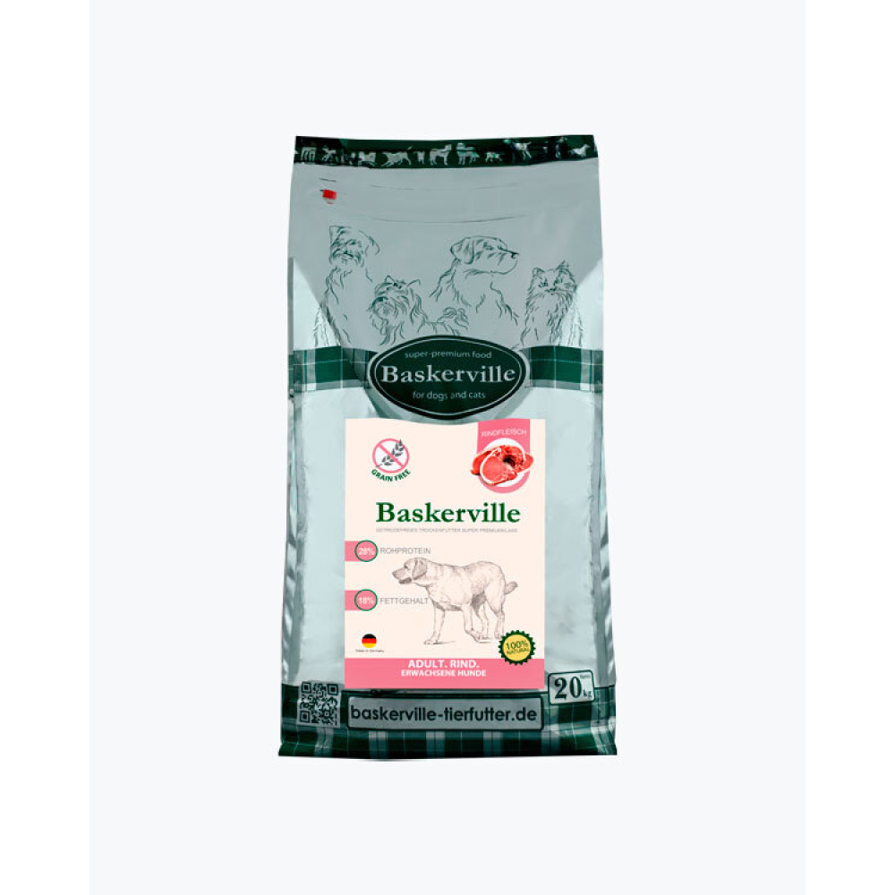Baskerville Adult Яловичина повнораціонний беззерновий сухий корм суперпреміум класу для дорослих собак, 20 кг