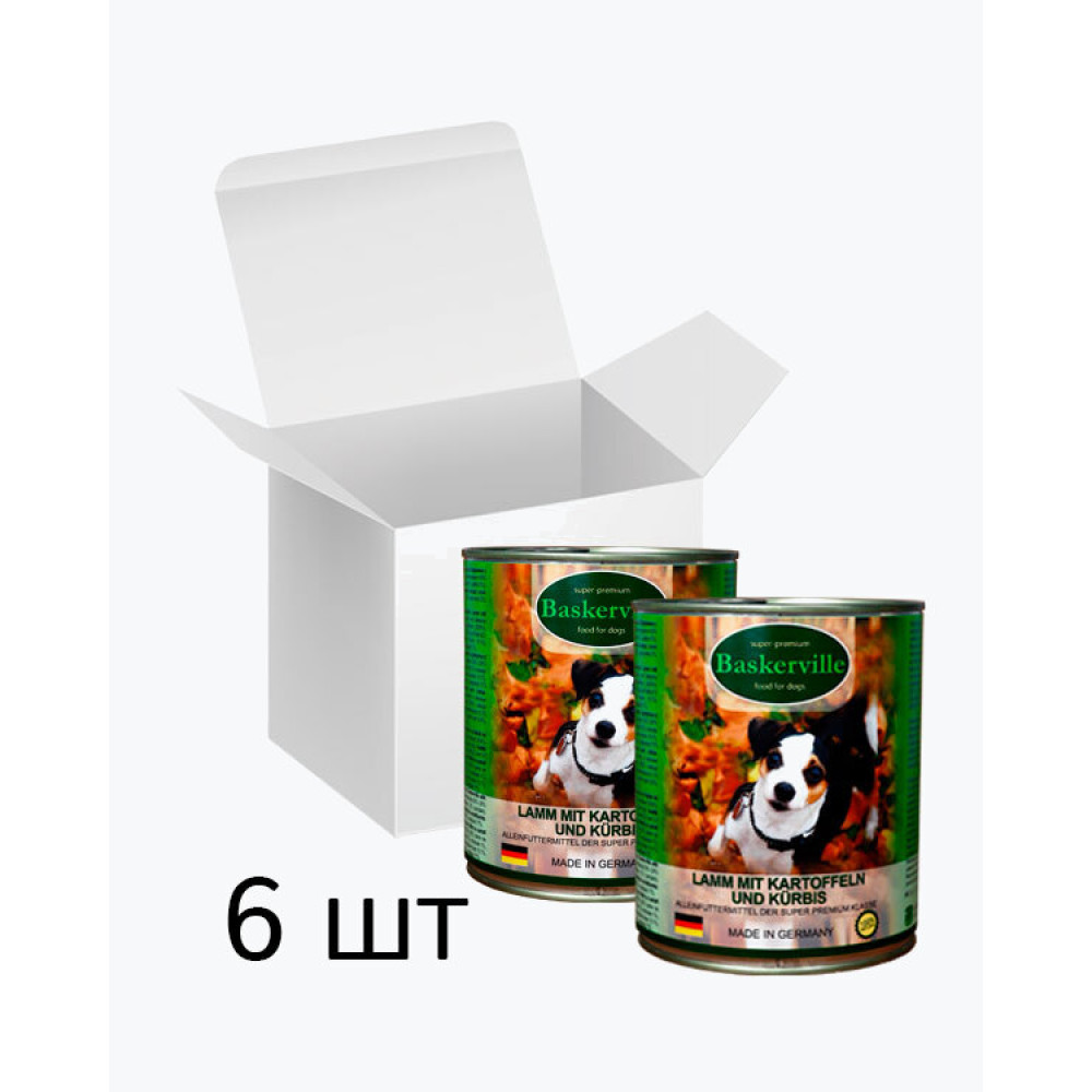 Baskerville Баранина з картоплею та гарбузом повнораціонний вологий корм суперпреміум класу для собак, упаковка 6 шт по 800 г