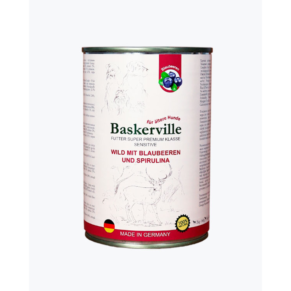 Baskerville Оленина з чорницею та спіруліною повнораціонний вологий корм суперпреміум класу для собак з чутливим травленням та літніх собак, 400 г