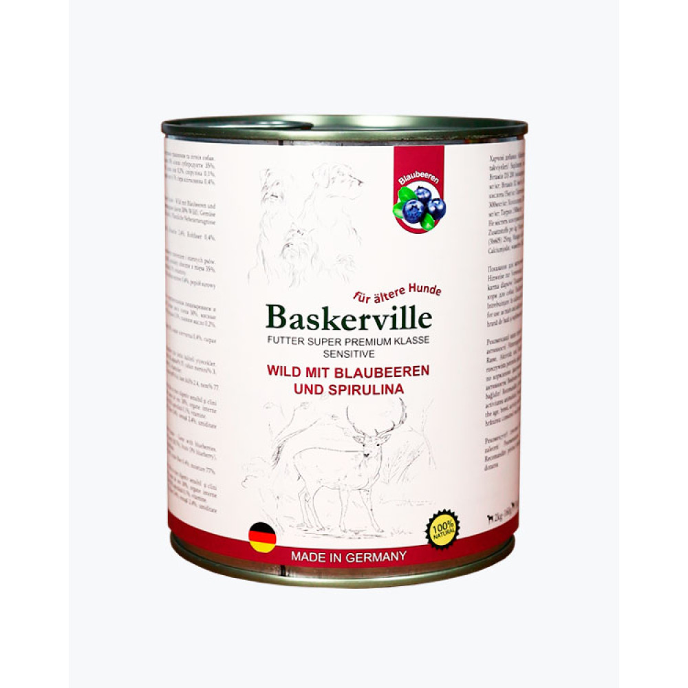 Baskerville Оленина з чорницею та спіруліною повнораціонний вологий корм суперпреміум класу для собак з чутливим травленням та літніх собак, 800 г