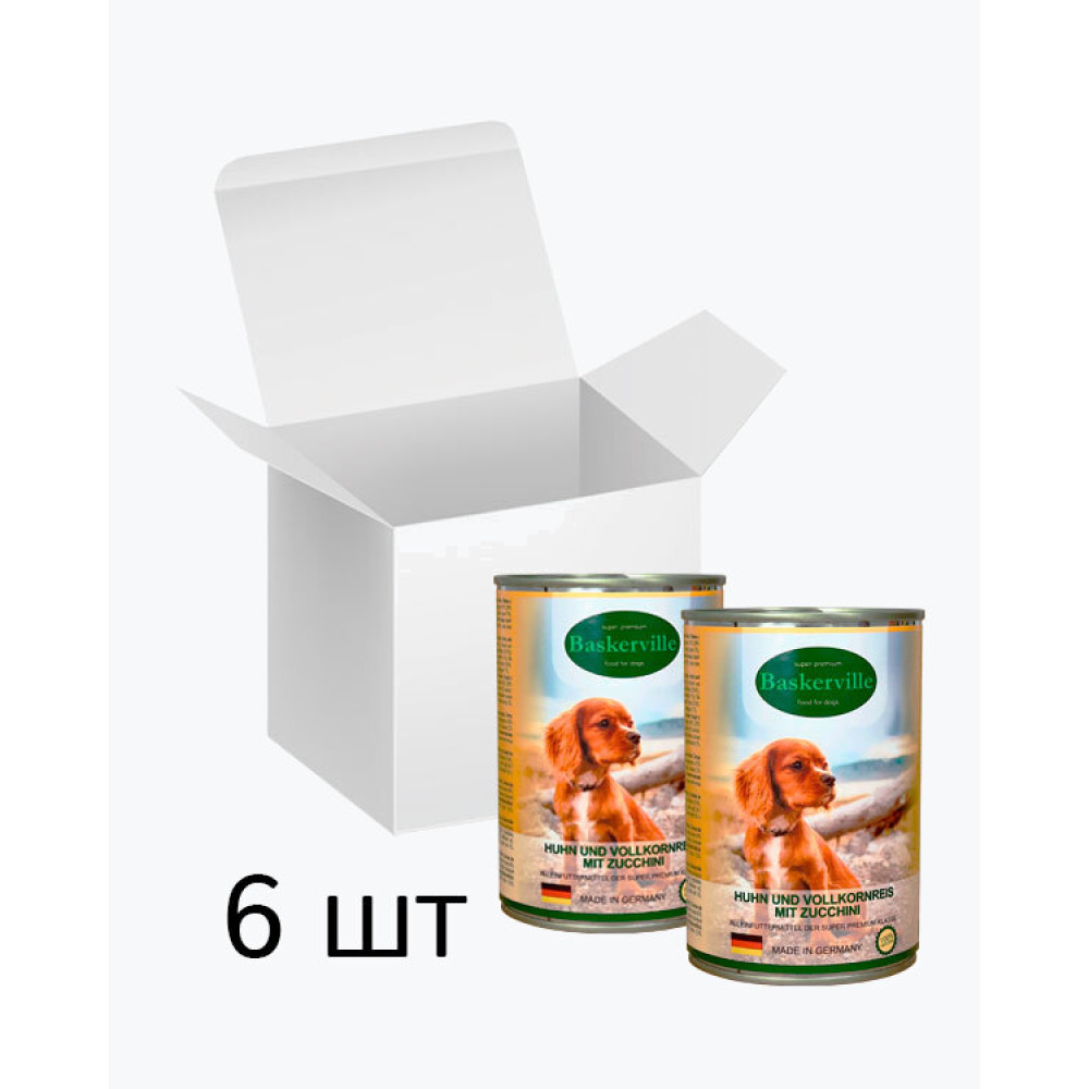 Вологий корм Baskerville – це повноцінний збалансований корм суперпреміум класу для собак. Виготовлений на основі нежирного м’яса півня, що добре засвоюється та насичує організм собаки необхідними поживними елементами. М’ясо багате на вітаміни: РР, А, В1, В2, В5, В6, В9 та В12, С, Е, Н, які суттєво впливають на здоров'я вашої тварини і обов'язково потрібні в раціоні. Також, до складу корму входить цукіні, його головна цінність - це багатий вітамінно-мінеральний склад, він містить вітамін A та вітаміни групи B, C, E, H, PP, також необхідні мінерали: калій, кальцій, фосфор, натрій, цинк та марганець. Овоч містить клітковину та пектини, які виконують життєво важливі функції в організмі. Рослинні волокна цукіні забезпечують стабільну роботу шлунково-кишкового тракту та сприяють загальному здоров'ю вашого чотирилапого улюбленця.
