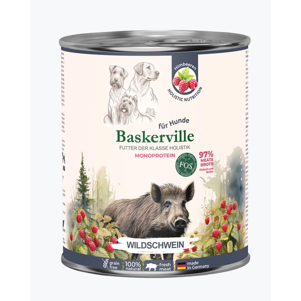 Монопротеїновий корм BASKERVILLE — це високоякісний продукт, створений спеціально для собак із чутливим травленням або схильністю до харчових алергій. Єдиним джерелом тваринного білка є дієтичне та поживне м’ясо дикого кабана, яке забезпечує організм собаки легко засвоюваним білком, залізом, цинком і вітамінами групи B. Такий корм сприяє зміцненню м’язів, підтримує енергійність і гарний фізичний стан тварини. А завдяки натуральному складу, насиченому смаку та приємному аромату, корм чудово підходить навіть для вибагливих собак. Не містить зернових, сої, барвників чи штучних ароматизаторів, що робить його безпечним і корисним вибором для щоденного годування.