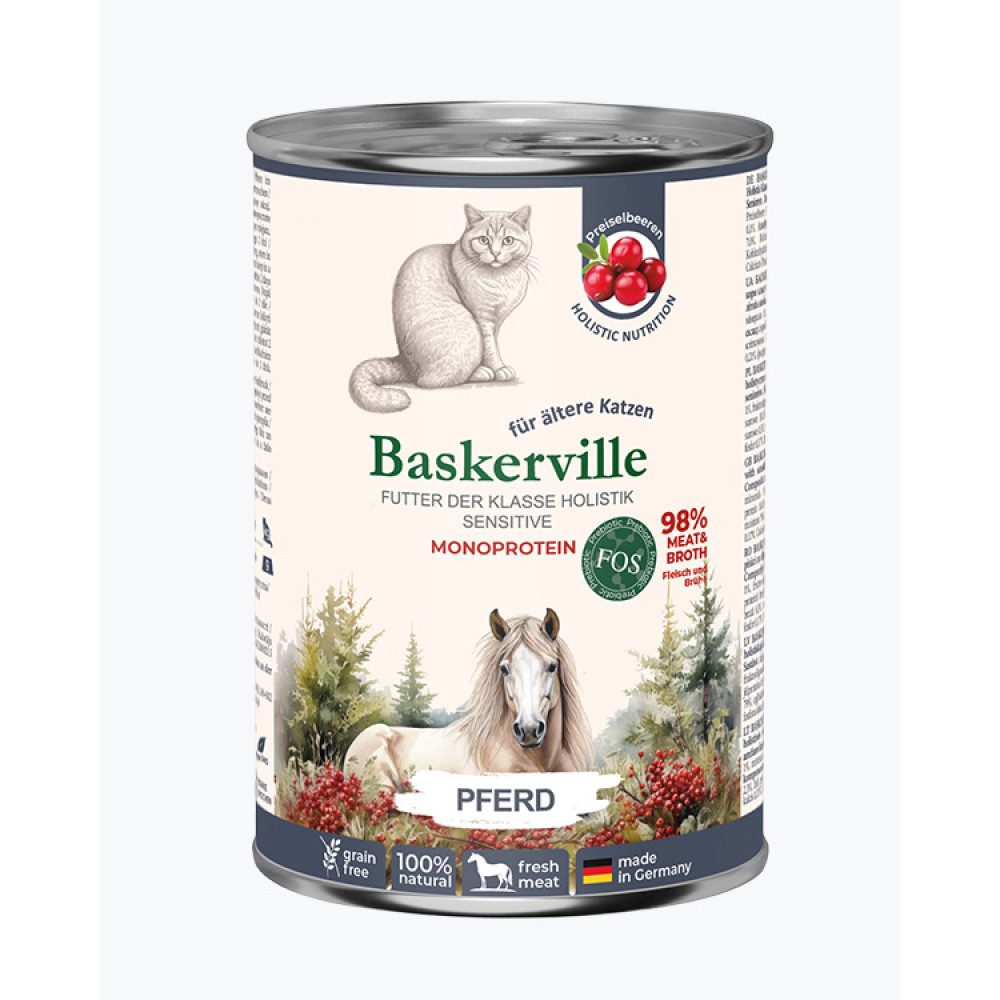 - Завдяки такому гармонійному поєднанню інгредієнтів, корм BASKERVILLE забезпечує комплексну підтримку здоров’я котів з чутливим травленням та літніх котів, зміцнює імунітет, покращує самопочуття й продовжує активне довголіття.