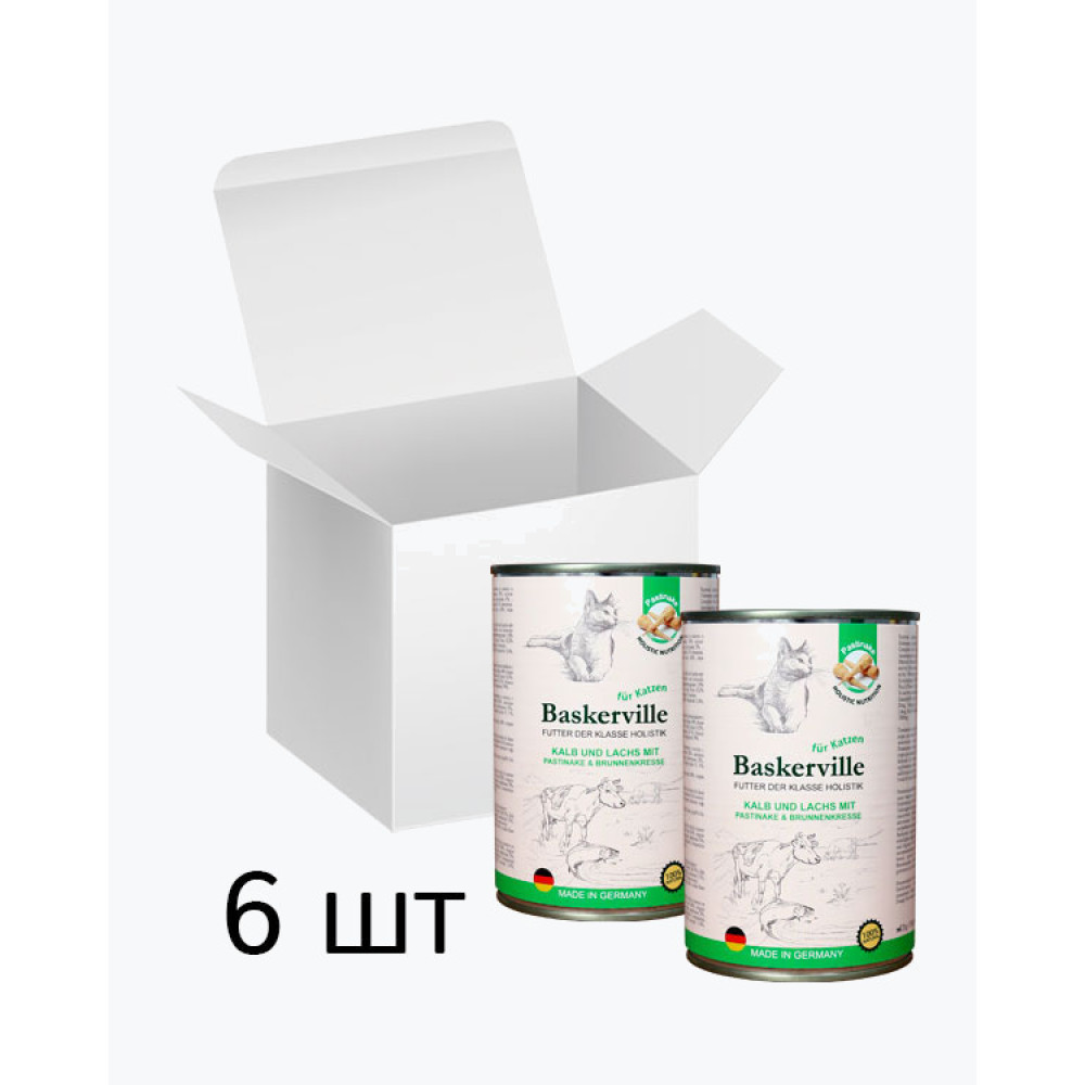 Вологий корм BASKERVILLE — це гармонійне поєднання м’яса, риби та овочів, яке забезпечує котів всім необхідним. Вологий корм на основі телятини, лосося, пастернаку та крес-салату — ідеальне рішення для щоденного раціону котів, оскільки поєднує високоякісні білки, корисні жири та вітаміни. А природні фітонутрієнти, що є у складі корму, мають легкий протизапальний ефект і покращують загальний стан організму. М’яка текстура і ніжний смак чудово сприймається навіть вибагливими улюбленцями.