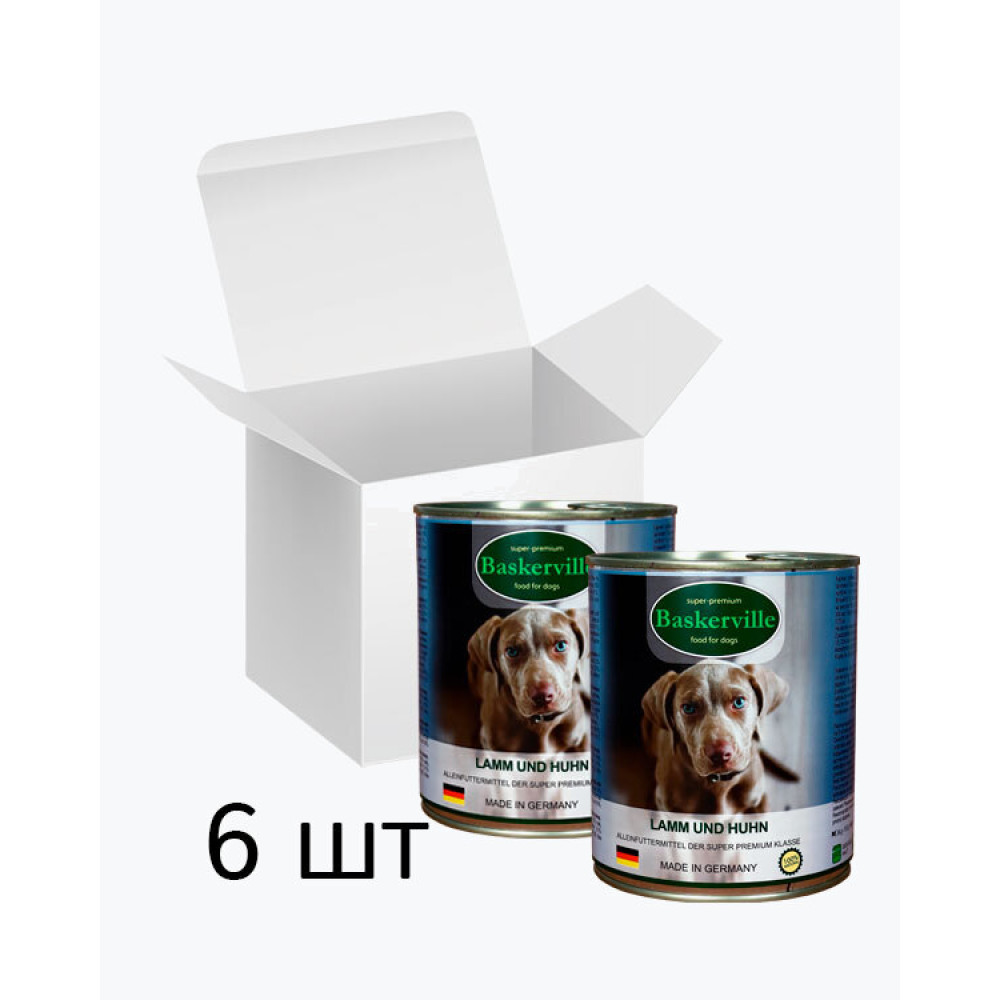 Baskerville Ягня та півень повнораціонний вологий корм суперпреміум класу для собак, упаковка 6 шт по 800 г