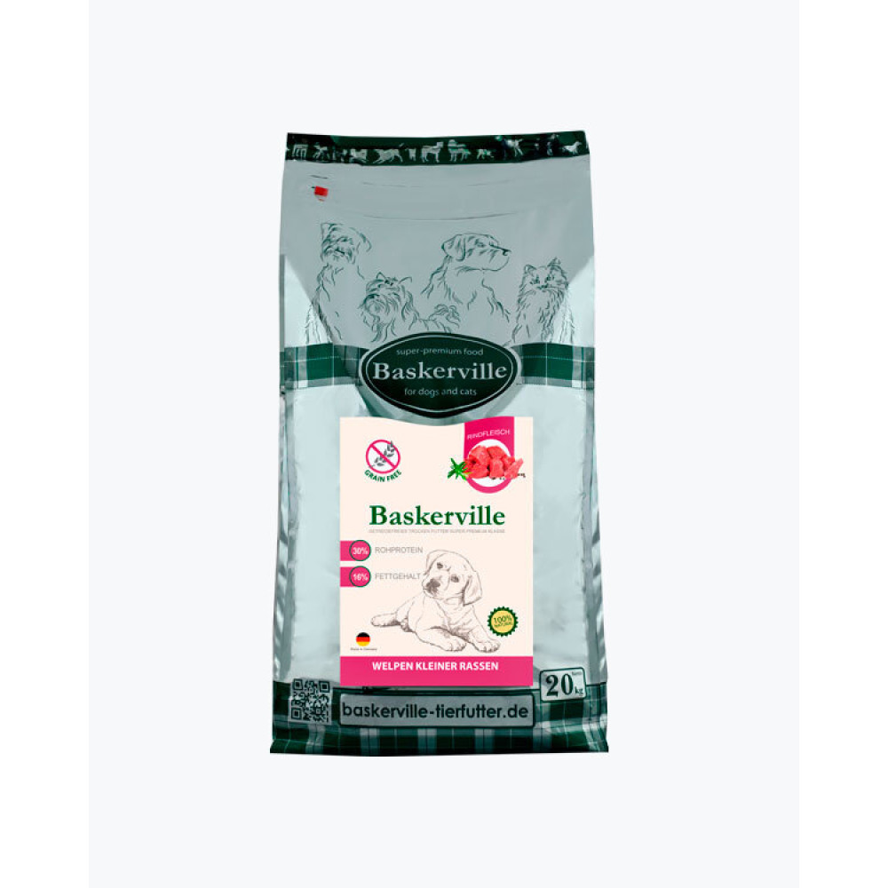 Baskerville Яловичина та птиця повнораціонний беззерновий сухий корм суперпреміум класу для цуценят дрібних порід починаючи з 9-го тижня життя, 20 кг