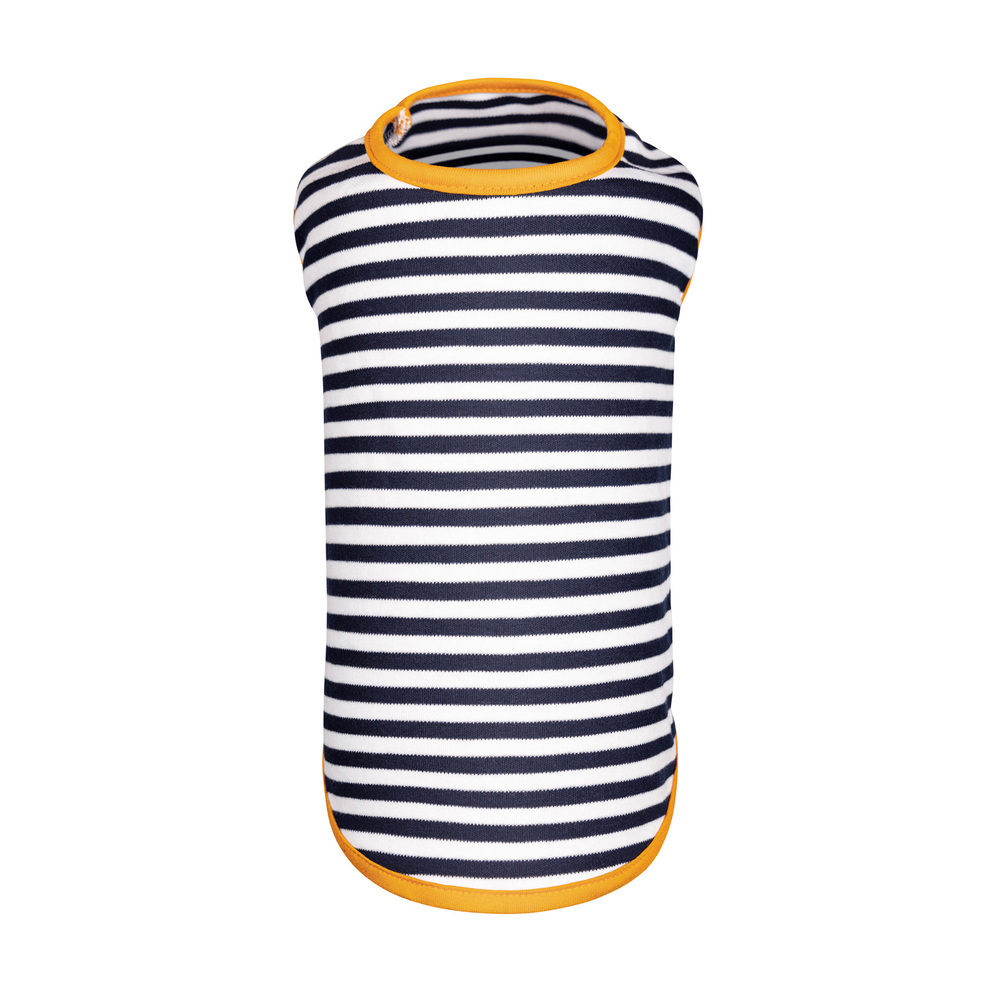 Цього сезону в колекціях провідних модних домів чимало одягу в лаконічну смужку – білу й синю, білу й чорну, білу й коричневу. Тож і ми пропонуємо хвостатим модникам стильне вбрання – смугасту борцівку Kale. Це втілення комфорту і зручності! Модель вподобають песики, що полюбляють багато грати та з комфортом відпочивати. Модель з легкого бавовняного трикотажу легко вдягається та проста у догляді.