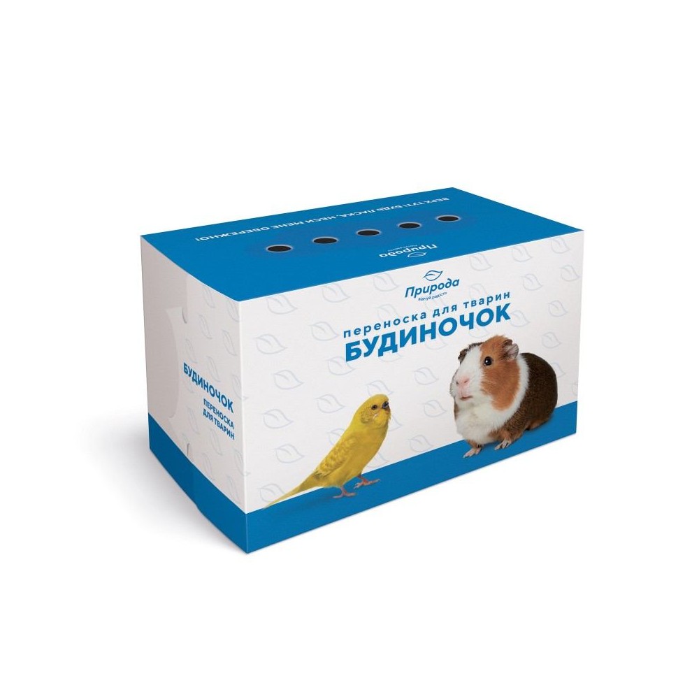 Будиночок-переноска для тварин зроблений з цупкого картону. Він легко відкривається, та надійно закривається за допомогою вирізів. Зверху будиночок має отвори для вентиляції.