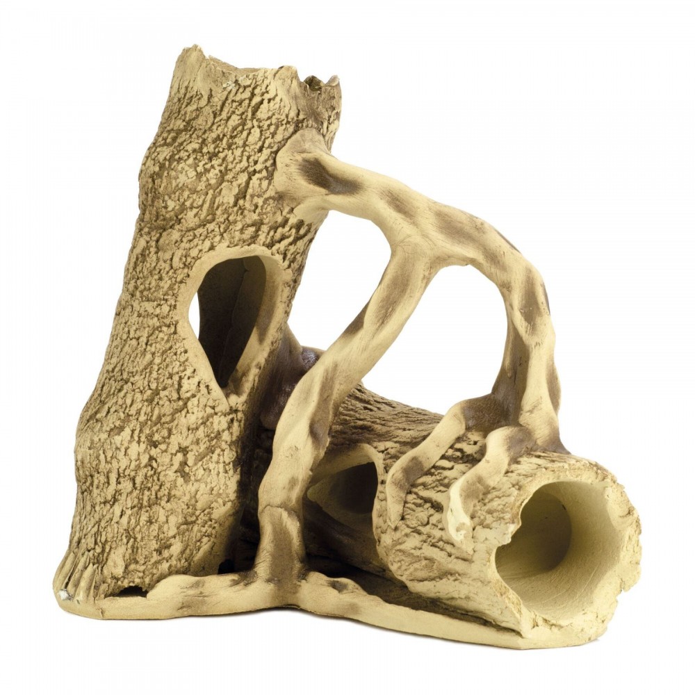 Дві колоди, перевиті ліанами, мають дуже привабливий вигляд, особливо в оточенні підводних рослин. Цей аксесуар може бути укриттям для маленьких і великих рибок та равликів, утримувати у грунті корені рослин і захищати їх від псування мешканцями акваріума, а також маскувати компресор чи фільтр.