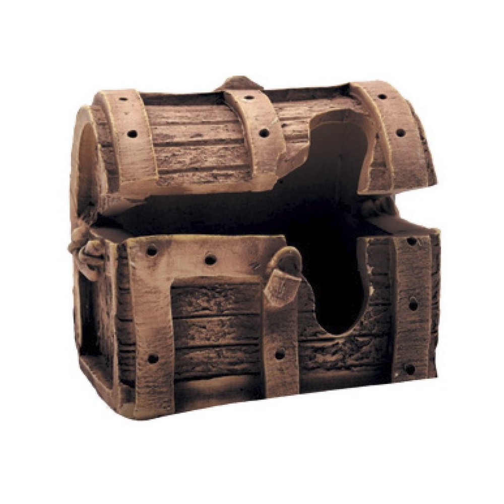 Вкрита водоростями скриня стане цікавим доповненням дизайну акваріума і створить особливу таємничу атмосферу, натякаючи, що десь поруч може бути заховано скарб. Через отвір до скрині із задоволенням запливатимуть на відпочинок риби, а сама скриня чудово підходить для маскування компресора або невеличкого фільтра.