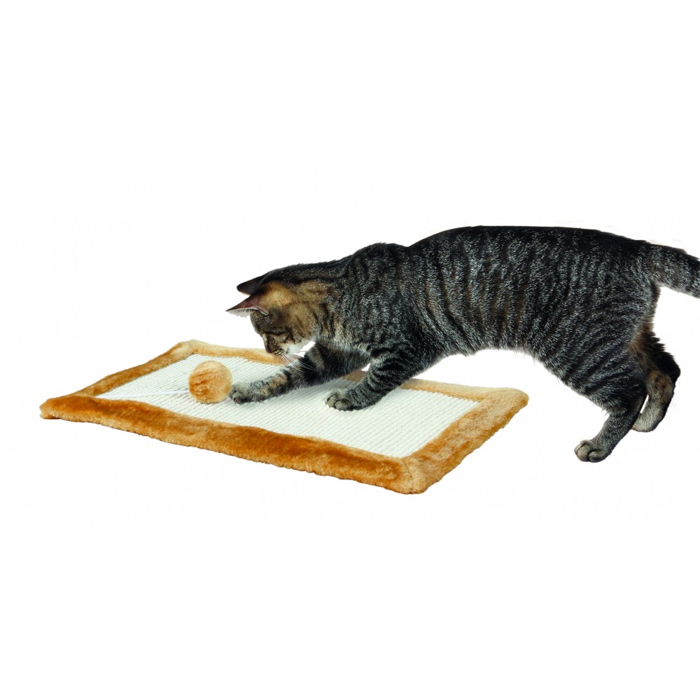Дряпка-килимок Trixie з іграшкою (світло-коричнева) 55*35cм у формі килимка не займе багато місця удома і гармонічно впишеться в інтер'єр. Зручна форма дозволить без проблем точити кігті і задовольняти інстинкти, викликаючи інтерес у кота, та розважаючи його.
