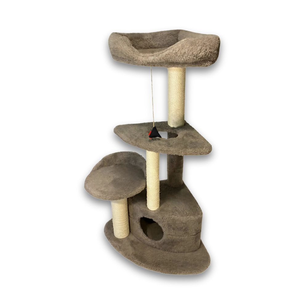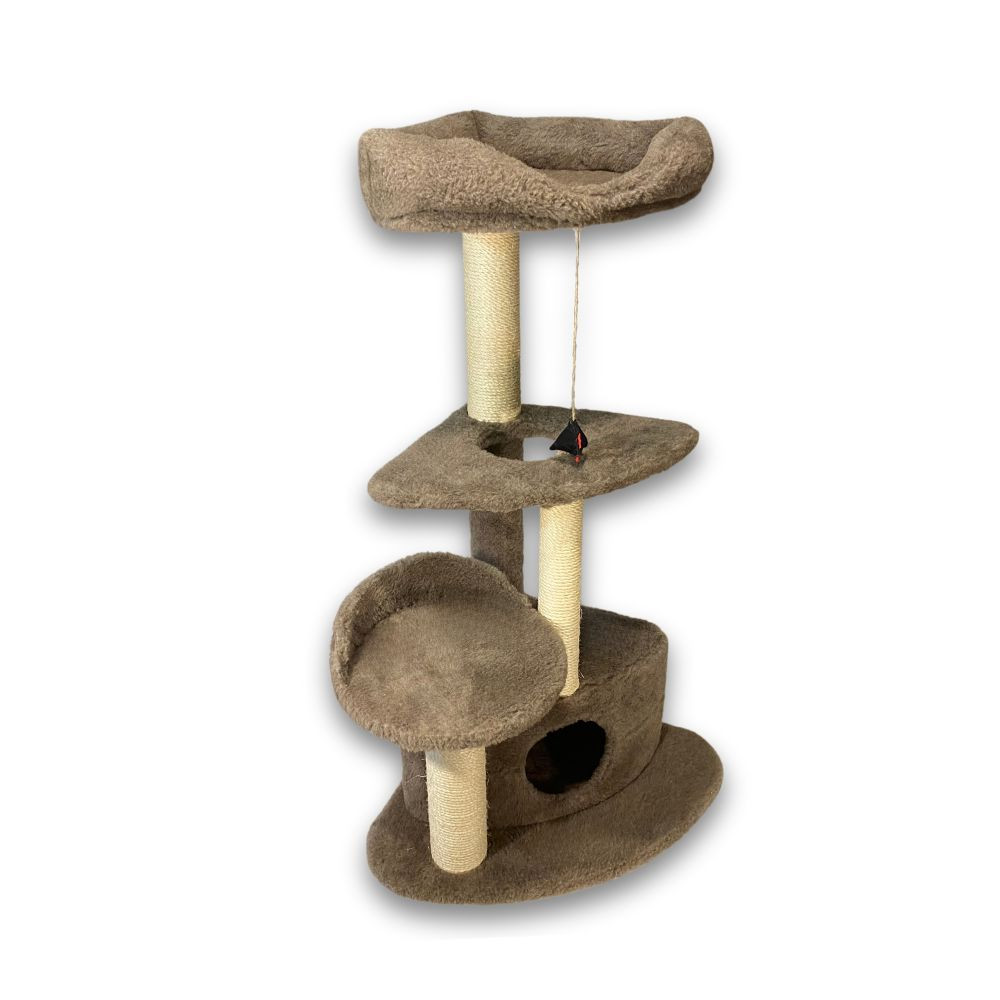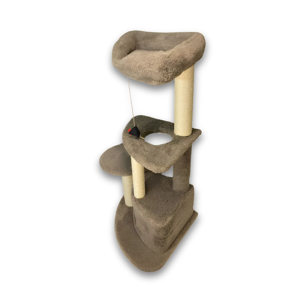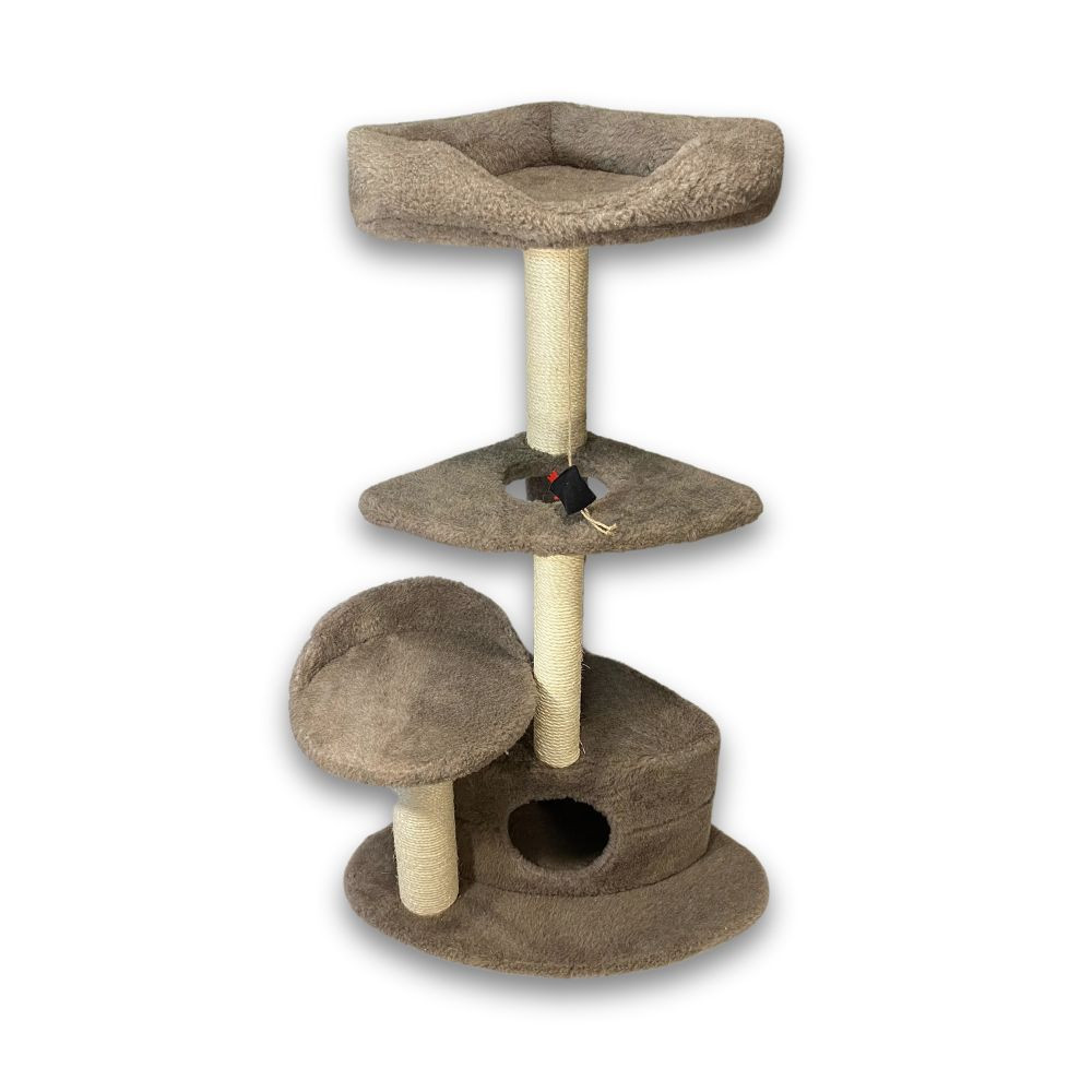 Третій ярус, встановлений на стовпчику-дряпці з сизалевою обмоткою, виготовлений у формі лежака з м'якими бортиками і дном, на якому буде так приємно відпочивати вашому улюбленцю. Конструкція міцна, стійка і прослужить не один рік