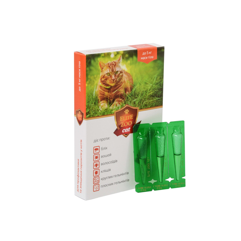котам масою тіла 1-5 кг – 0,5 мл препарату;