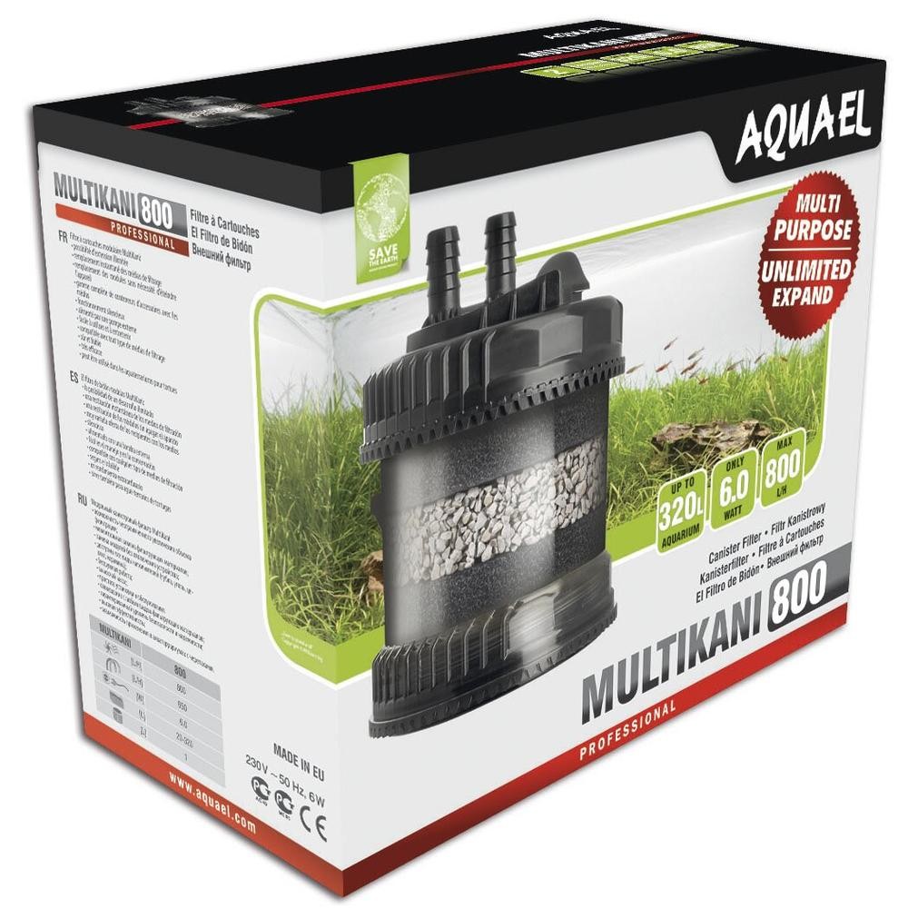 Купуючи зовнішній фільтр Multikani, Ви отримуєте насос високої потужності і каністру, заповнену механічним (губки) та хімічним (цеоліт) наповнювачами. Обсяг фільтраційного наповнювача однієї каністри розрахований приблизно на акваріуми до 50 літрів. При необхідності можливе збільшення обсягу фільтраційного матеріалу шляхом доукомплектування фільтра додатковими модулями (до 8 штук) з різними наповнювачами.