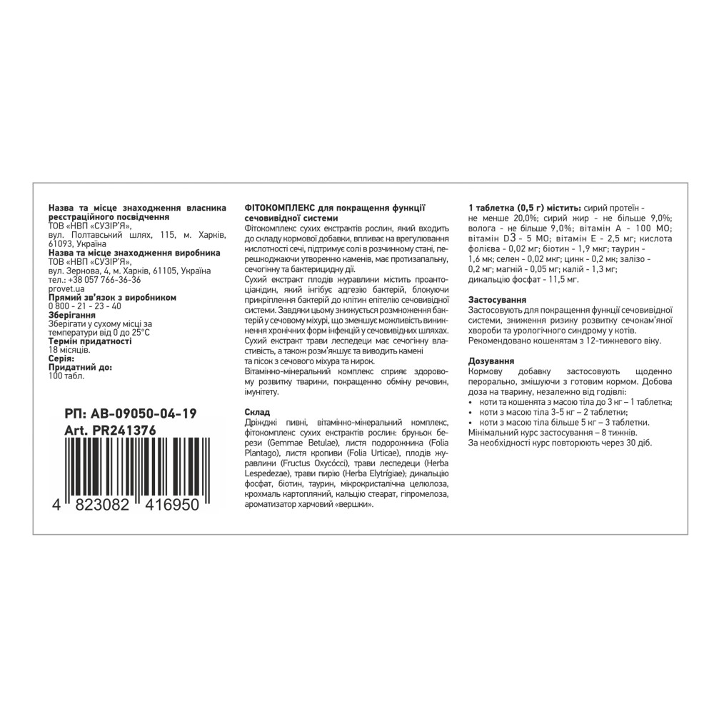 Фітокомплекс сухих екстрактів рослин, який входить до складу кормової добавки, впливає на кислотність сечі, підтримує солі в розчинному стані, перешкоджаючи утворенню каменів, має протизапальну, сечогінну та бактерицидну дії. Сухий екстракт плодів журавлини містить проантоціанідин, який інгібує адгезію бактерій, блокуючи прикріплення бактерій до клітин епітелію сечовивідної системи.