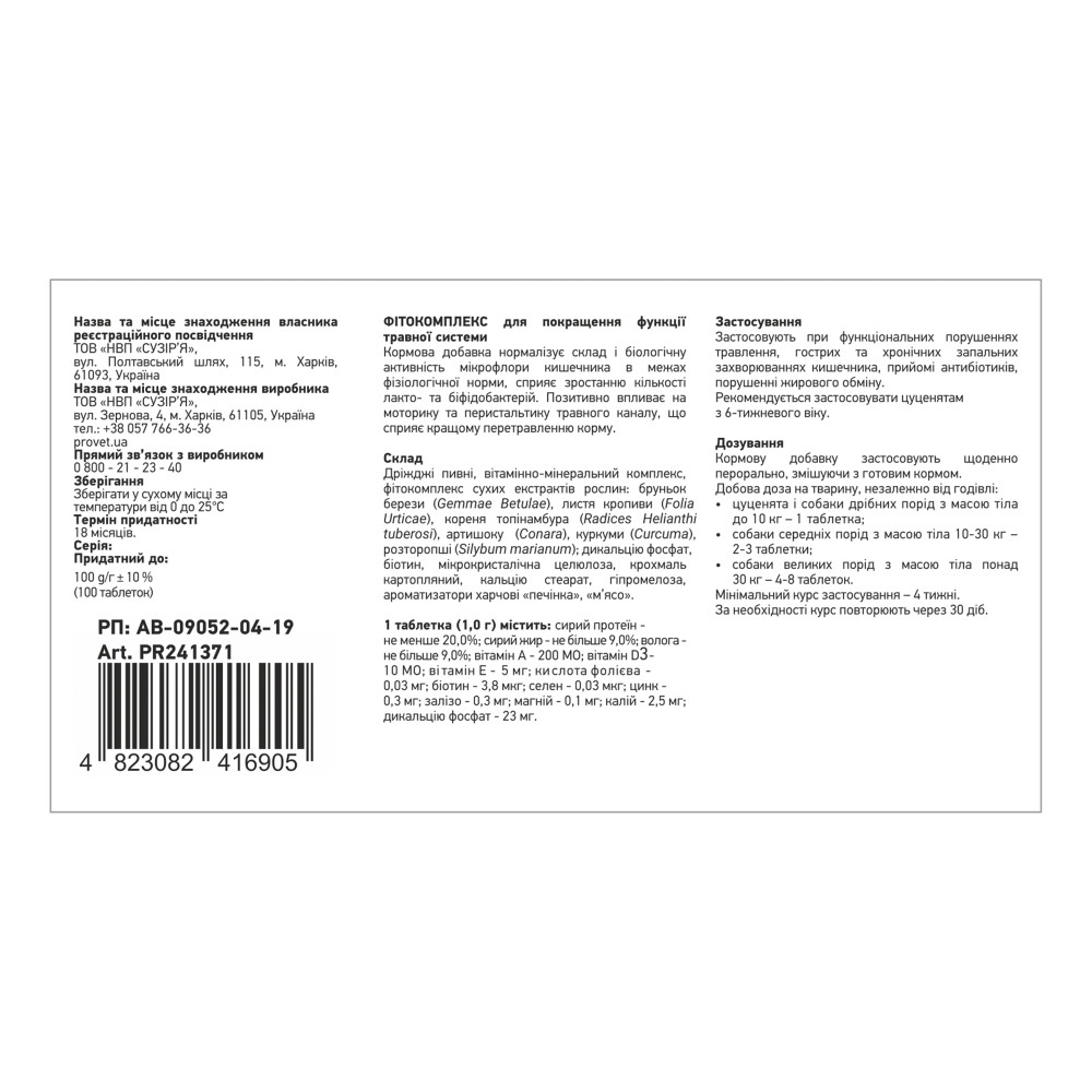 Склад: Дріжджі пивні, вітамінно-мінеральний комплекс, фітокомплекс сухих екстрактів рослин: бруньок берези (Gemmae Betulae), листя кропиви (Folia Urticae), кореня топінамбура (Radices Helianthi tuberosi), артишоку (Cўnara), куркуми (Curcuma), розторопші (Silybum marianum); дикальцію фосфат, біотин, мікрокристалічна целюлоза, крохмаль картопляний, кальцію стеарат, гіпромелоза, ароматизатор харчовий «м'ясо».