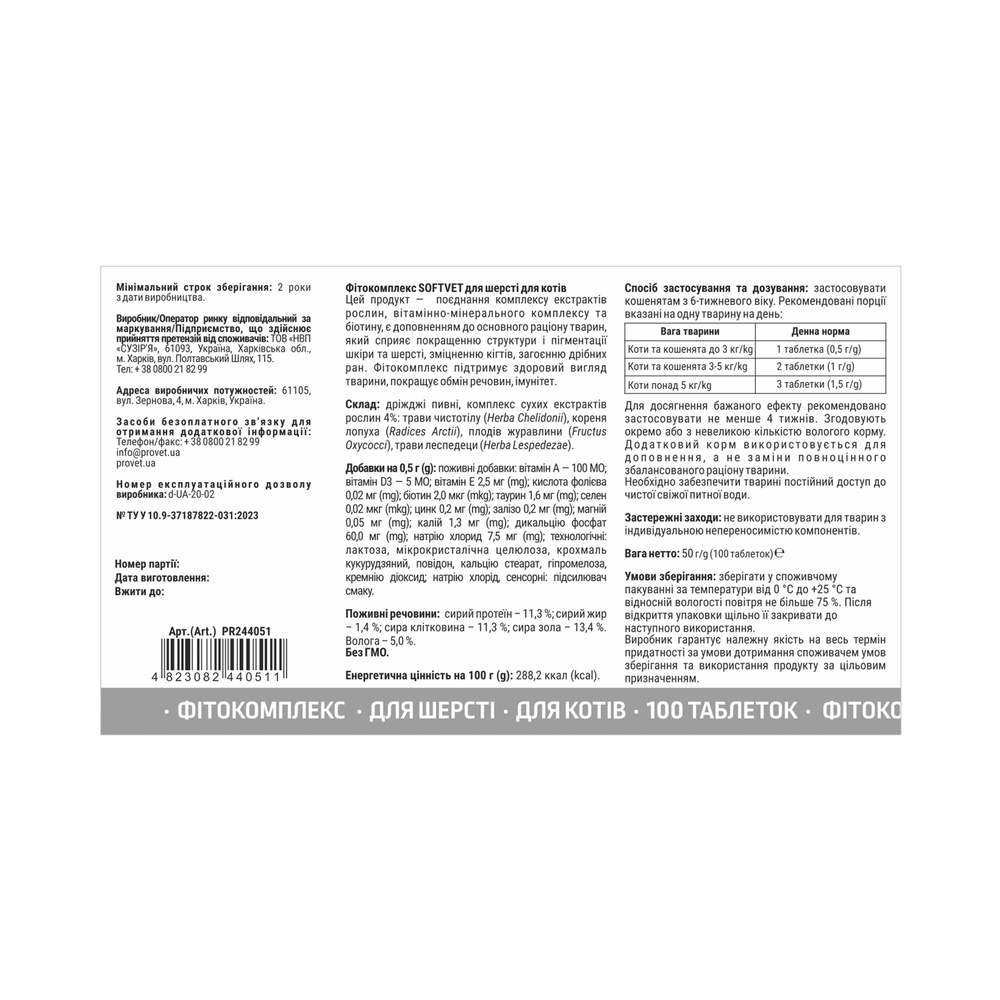 Цей продукт — поєднання фітокомплексу екстрактів рослин, вітамінно-мінерального комплексу та біотину, є доповненням до основного раціону тварин, який сприяє покращенню структури і пігментації шкіри та шерсті, зміцненню кігтів, загоєнню дрібних ран. Фітокомплекс підтримує здоровий вигляд тварини, покращує обмін речовин, імунітет.