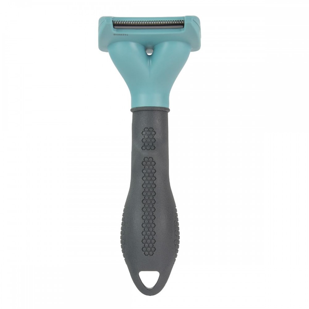 - Лезо інструменту проникає крізь остьове волосся, не пошкоджуючи його, і легко витягує мертві, слабо прикріплені волоски підшерстя
