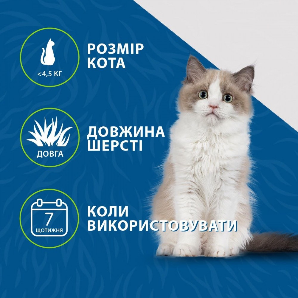 Використовуйте на сухій шерсті 1-2 рази на тиждень протягом 10-20 хвилин.