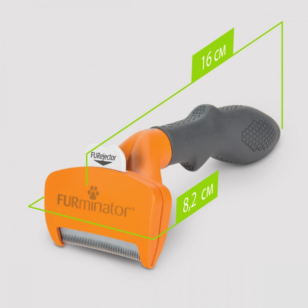 Інструмент FURminator М для середніх порід собак (9 кг -23 кг) із короткою шерстю зменшує линяння на 90%. Призначений для шерсті довжиною до 5 см.