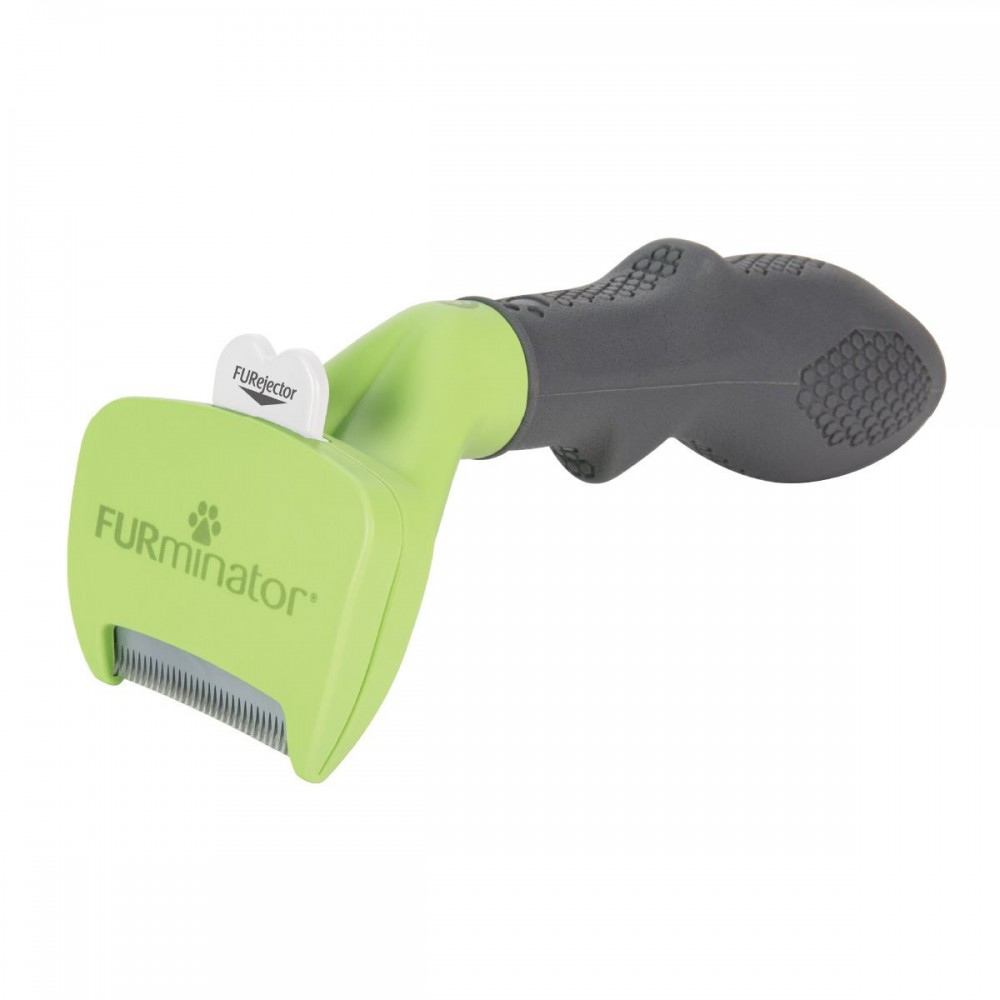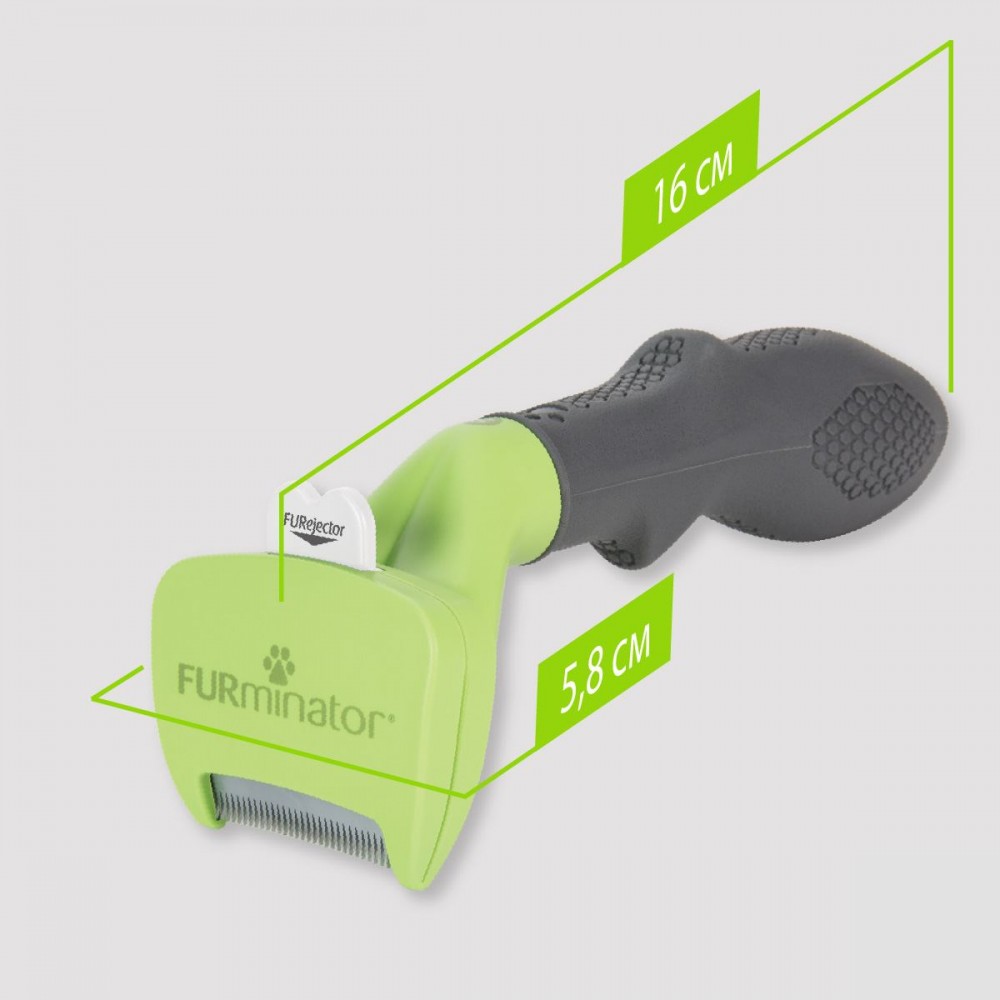 Інструмент FURminator S для малих порід собак (4,5 кг-9 кг) із короткою шерстю зменшує линяння на 90%. Призначений для шерсті довжиною до 5 см. Використовуйте на сухій шерсті 1-2 рази на тиждень протягом 10-20 хвилин.