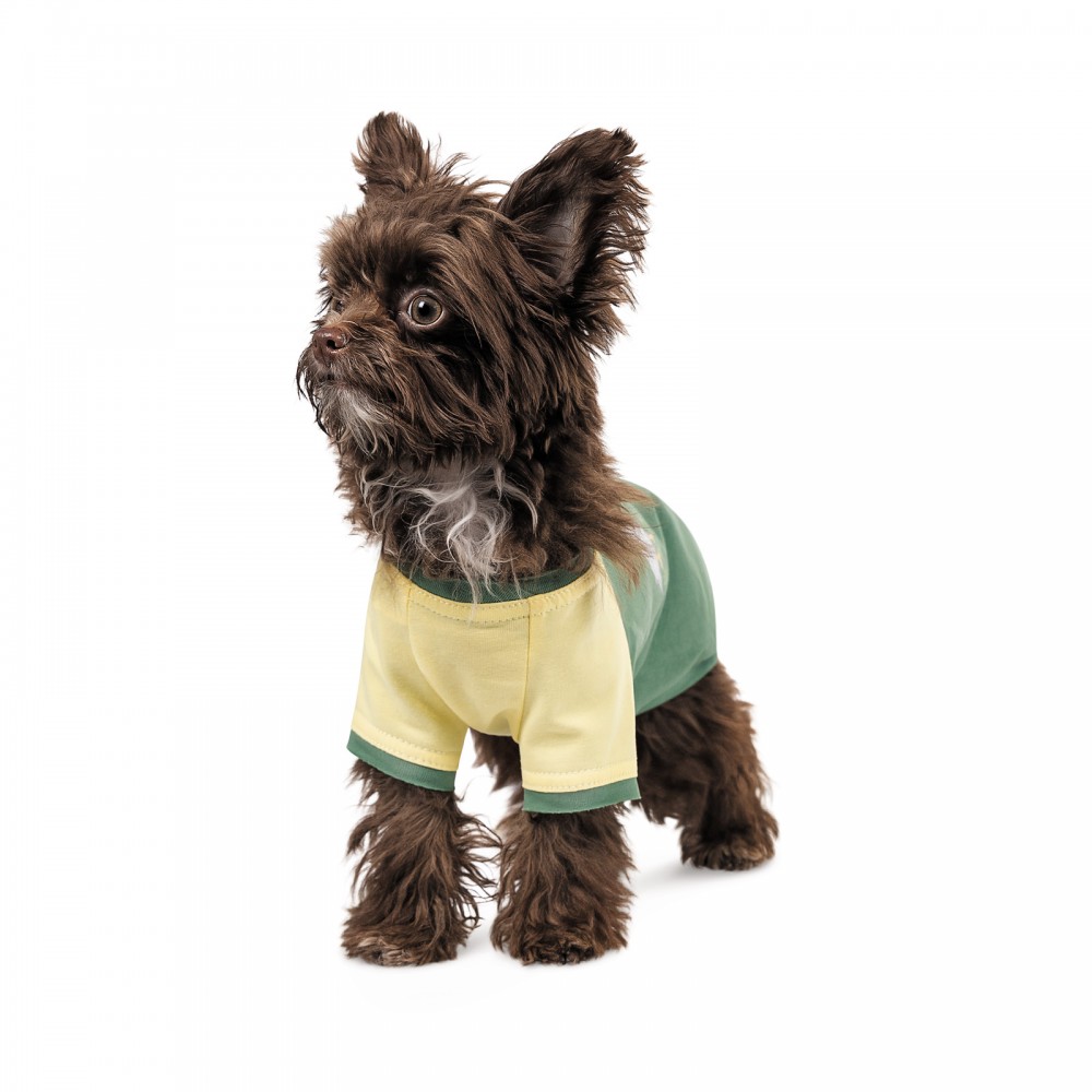 Тканина футболки м’яка та дихаюча. Бавовняний трикотаж захистить хвостика і від спеки, і від прохолоди. Завдяки еластичності тканини та продуманому крою футболка легко вдягається без застібки.