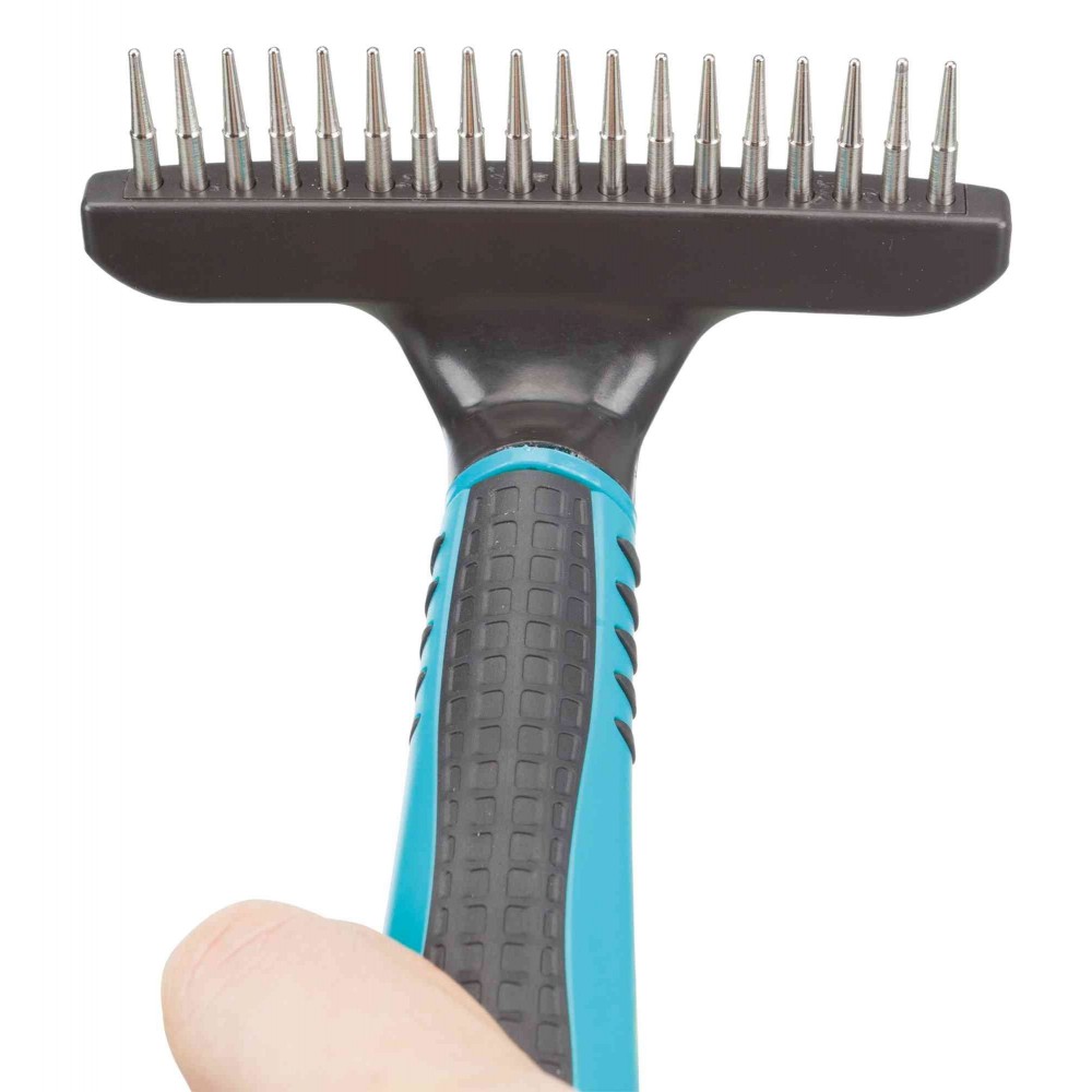 Гребінець-граблі Trixie – це спеціалізований інструмент для ефективного видалення ковтунів та забезпечення глибокого догляду за довгою шерстю.