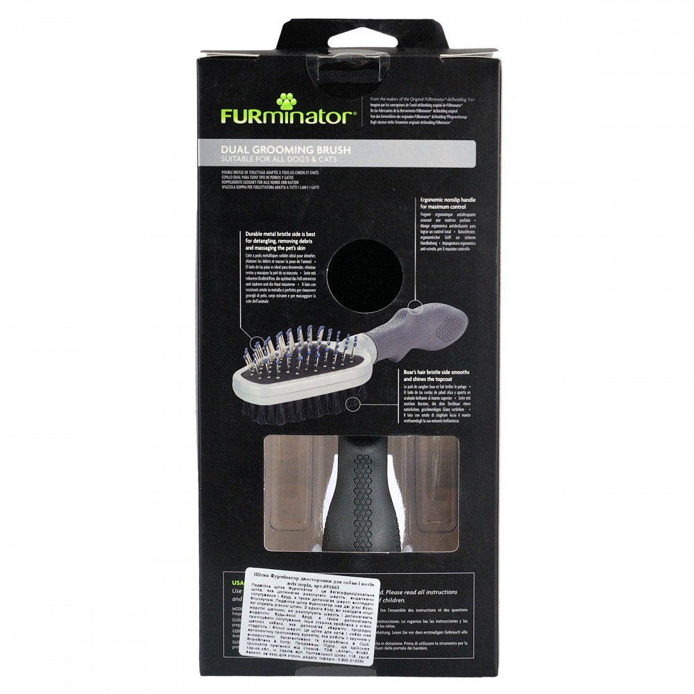 Двостороння щітка FURminator® - це щітка 2-в-1, що має жорсткі зубчики з одного боку та м'яку щетину з іншого. Використовуйте щоденно по 5-10 хвилин.