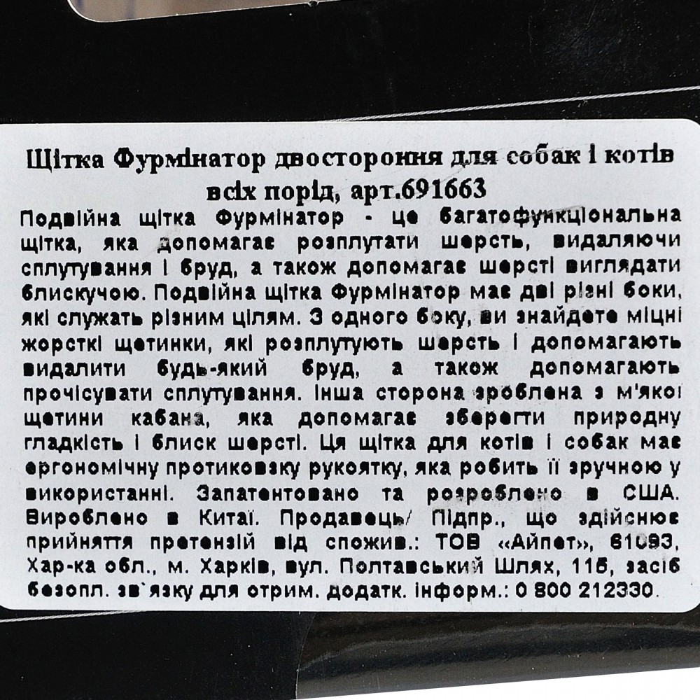 Використовуйте двосторонню щітку FURminator® згідно з рекомендаціями щодо застосування.