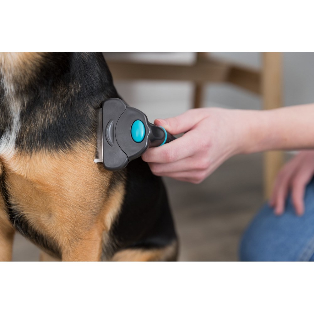 - Ефективно видаляє підшерстя, що відмерло, запобігаючи утворенню ковтунів та зменшуючи кількість шерсті в будинку.