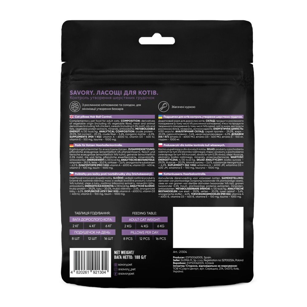 Додаткове харчування з рослинною клітковиною та солодом, що поліпшує перистальтику кишківника, м'яко виводить проковтнуту шерсть природним шляхом та мінімізує утворення безоарів. Хрусткі подушечки покращують кровообіг ясен та механічно очищують зубний наліт. Також добре підходять для літніх вихованців та тих, хто має проблему чутливості зубів.