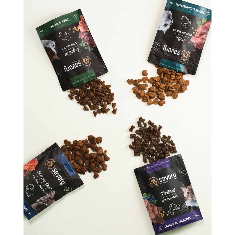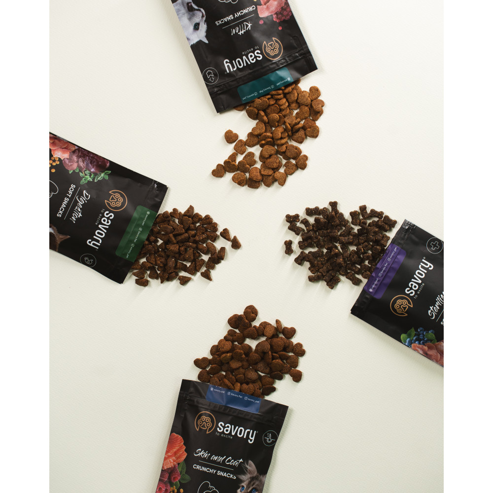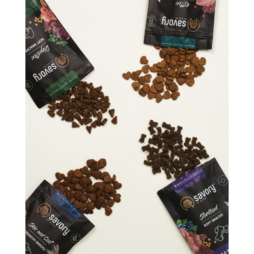 Додаткове харчування, що можна використовувати як заохочення та винагороду для улюбленця. Не тільки висока смакова привабливість, але й корисні складові, що є основою здорового харчування, роблять ласощі Savory ідеальним доповненням до раціону і частуванням для малечі.