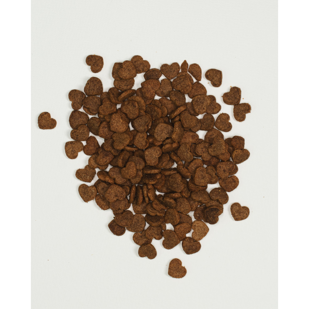Склад: протеїн лосося 30%, жовтий горох 26%, картопля 15%, протеїн форелі 12%, жир домашньої птиці 7%, гідролізований протеїн лосося 5%, горохове борошно 2.7%, ріпакова олія 1%, сушена малина 1%, сушена котяча м'ята 0.3%.