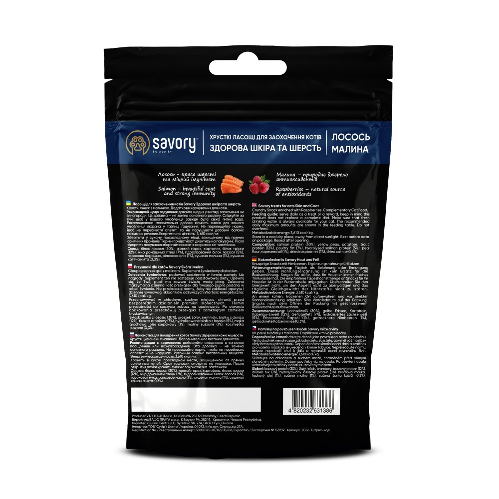 Додаткове харчування, що можна використовувати як заохочення та винагороду для улюбленця. Не тільки висока смакова привабливість, але й корисні складові, що є основою здорового харчування, роблять ласощі Savory ідеальним доповненням до раціону і частуванням для вихованця.