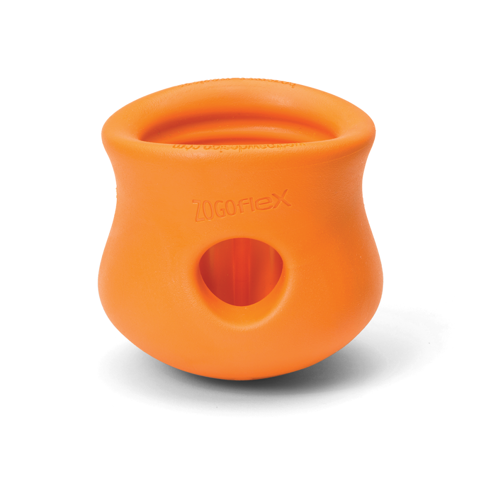 Іграшки для частування зі схованкою для ласощів - це весела розвага для Вашого собаки. Топпл - це своєрідна скарбничка з ласощами Вашого вихованця - остання новинка, що доповнює лінію іграшок Zogoflex . Цуценята прикладатимуть всіх зусиль, щоб дістати улюблені ласощі з непіддатливої, хиткої іграшки Топпл.