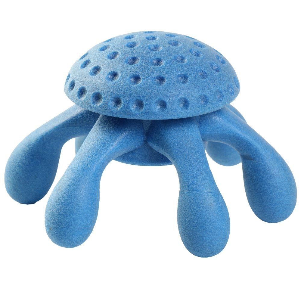 • Восьминіг гарно ширяє в повітрі і падає далеко. При ударі об землю або об перешкоду він відскакує, імітуючи поведінку здобичі в природі. А собаки, як відомо, мають розвинений мисливський інстинкт, тому, намагаючись піймати іграшку, ваш вихованець точно буде в захваті від цього заняття.