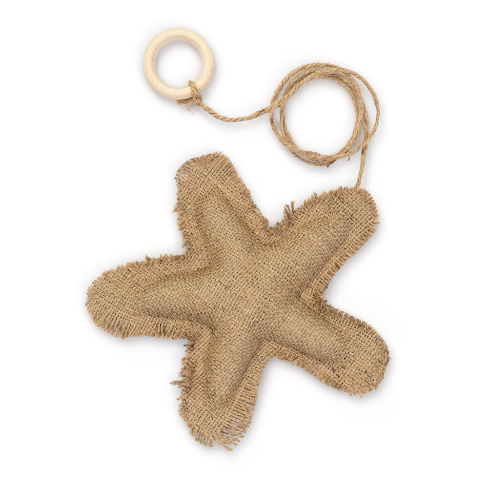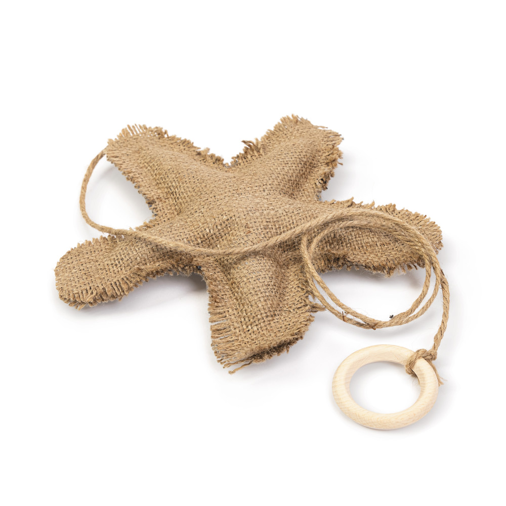 Матеріали: мішковина, синтепон, джутова мотузка, дерев’яне кільце, пищалка всередині.