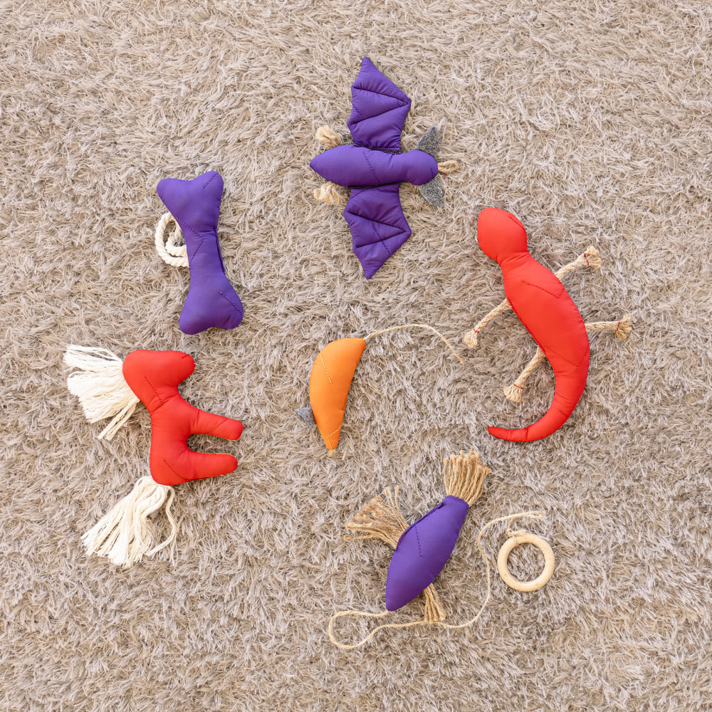 Тканина виготовлена із перероблених рибальських сіток та пластику, добутих зі світового океану. Іграшка має оптимальний розмір і цікаву форму, її можна підкидати, ганяти по підлозі, ховати та знаходити. Під час гри наповнювач шурхотить, що робить гру ще цікавішою.