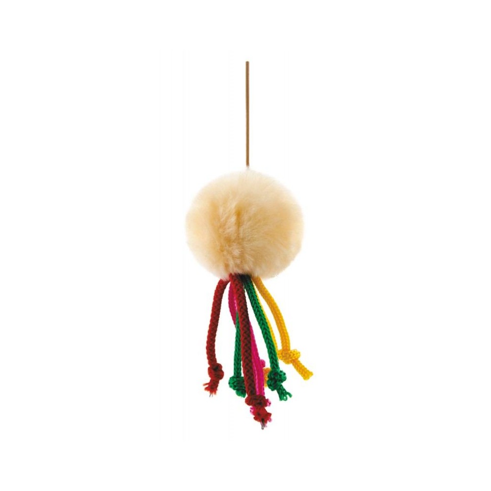 М'який м'ячик виготовлений зі штучного хутра і припаде до смаку котам різного віку. З такою іграшкою ви можете розважати улюбленця, а якщо немає вільного часу - підвісити м'ячик на надійну опору, і котик буде із задоволенням «полювати» на нього сам. Шнурки з вузликами роблять іграшку ще більш привабливою.
