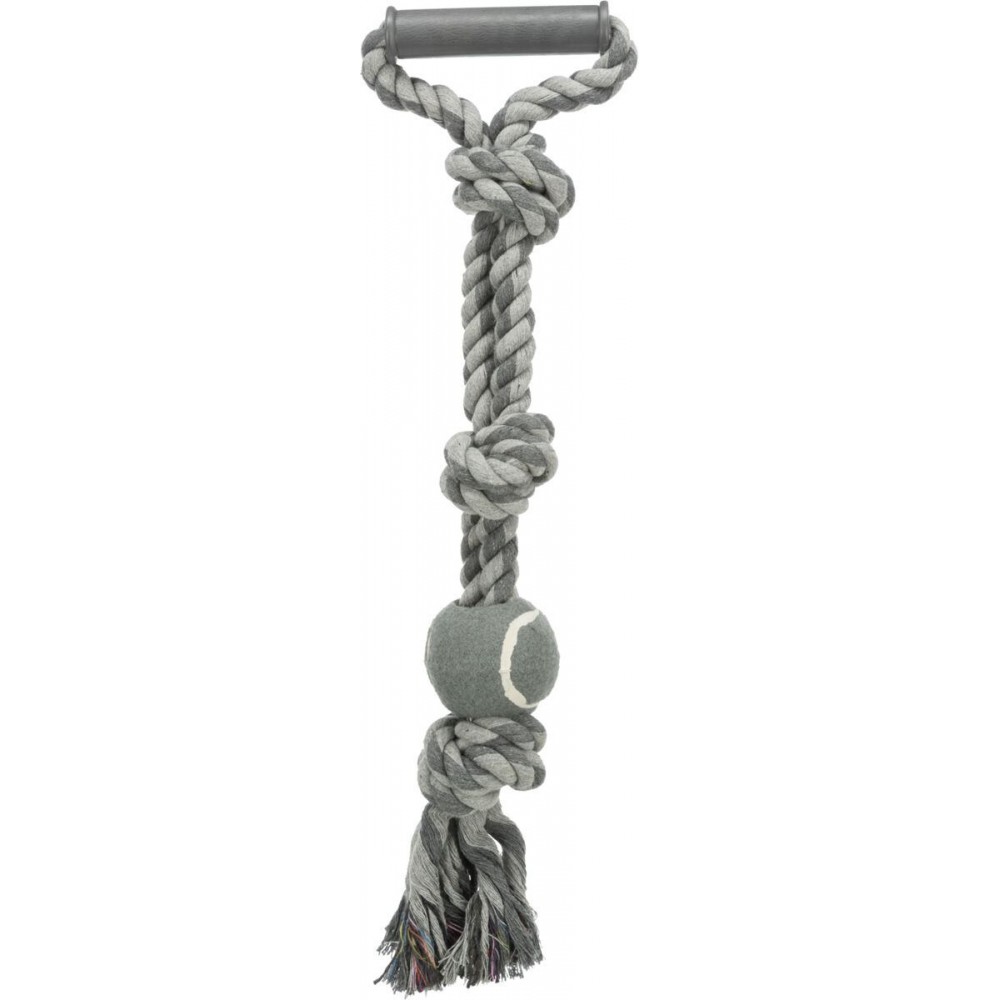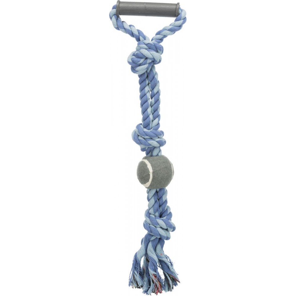 Кожний турботливий господар бажає, щоб його тваринка була щасливою і життєрадісною. Бренд Trixie повністю згоден з таким бажанням, а тому пропонує свою розробку Іграшка для собак Trixie Канат плетений з ручкою та м'ячем 50 см, d:6 см (текстиль), здатну розвивати вашого улюбленця та дарувати йому гарний настрій