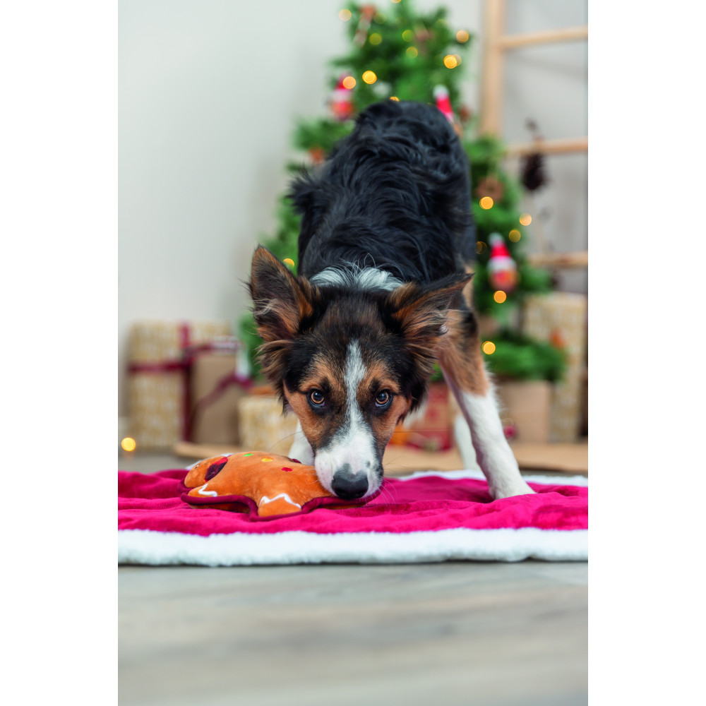 Собаки дуже люблять м’які іграшки. Чому? Бо її можна кидати і ловити, гратися самому або зі своєю людиною, покласти поруч із собою у лежак для затишку, або використати як подушку. Загалом – незамінна річ для песика! Ця плюшева фігурка подарує вашому улюбленцю чимало радісних хвилин. Вона виготовлена з міцних безпечних матеріалів і має цікавий різдвяний дизайн, тож допоможе створити атмосферу свята у вашому домі. Іграшка під час гри видає цікаві звуки, які подобаються собакам.