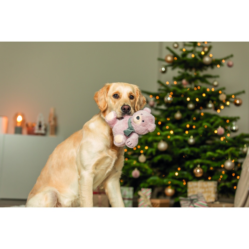 Цей милий плюшевий ведмедик ідеальний компаньйон для вашого песики в період зимових свят і не тільки. Виготовлений з м'якого, приємного на дотик плюшу, він стане улюбленою забавкою для обіймання та гри.