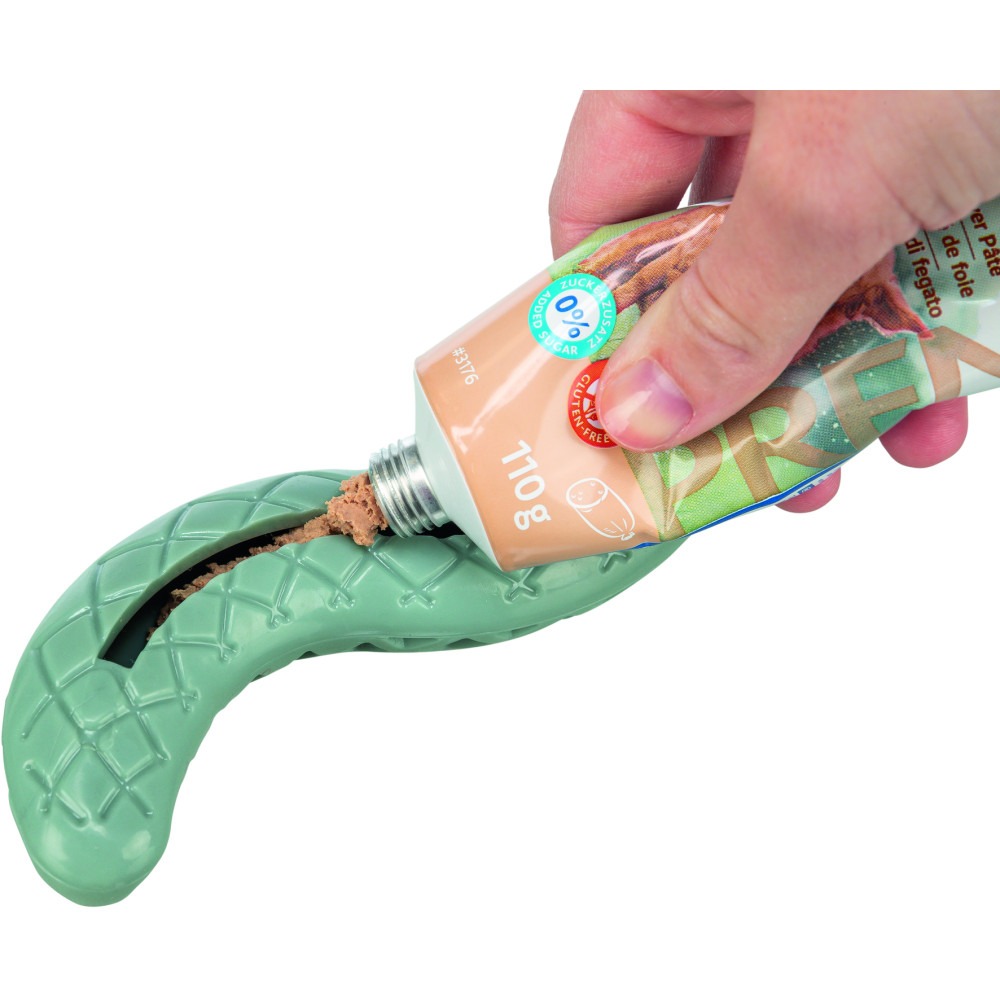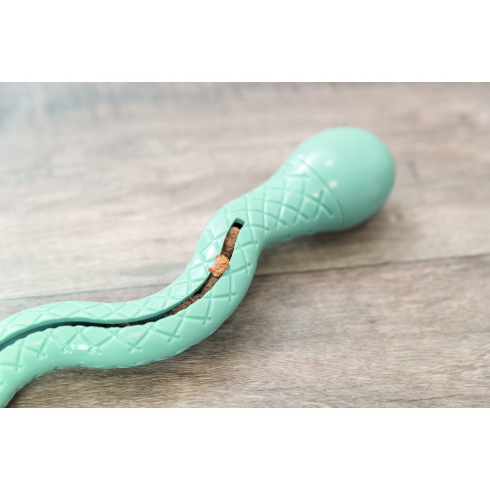 Внизу іграшки є отвір, який можна заповнити, наприклад, смачними паштетами або круглими ласощами. Незалежно від того, чи хочете ви дати своєму собаці нагороду чи просто привернути його увагу в ігровій формі, Snack Snake — це веселі зміни повсякденного життя.