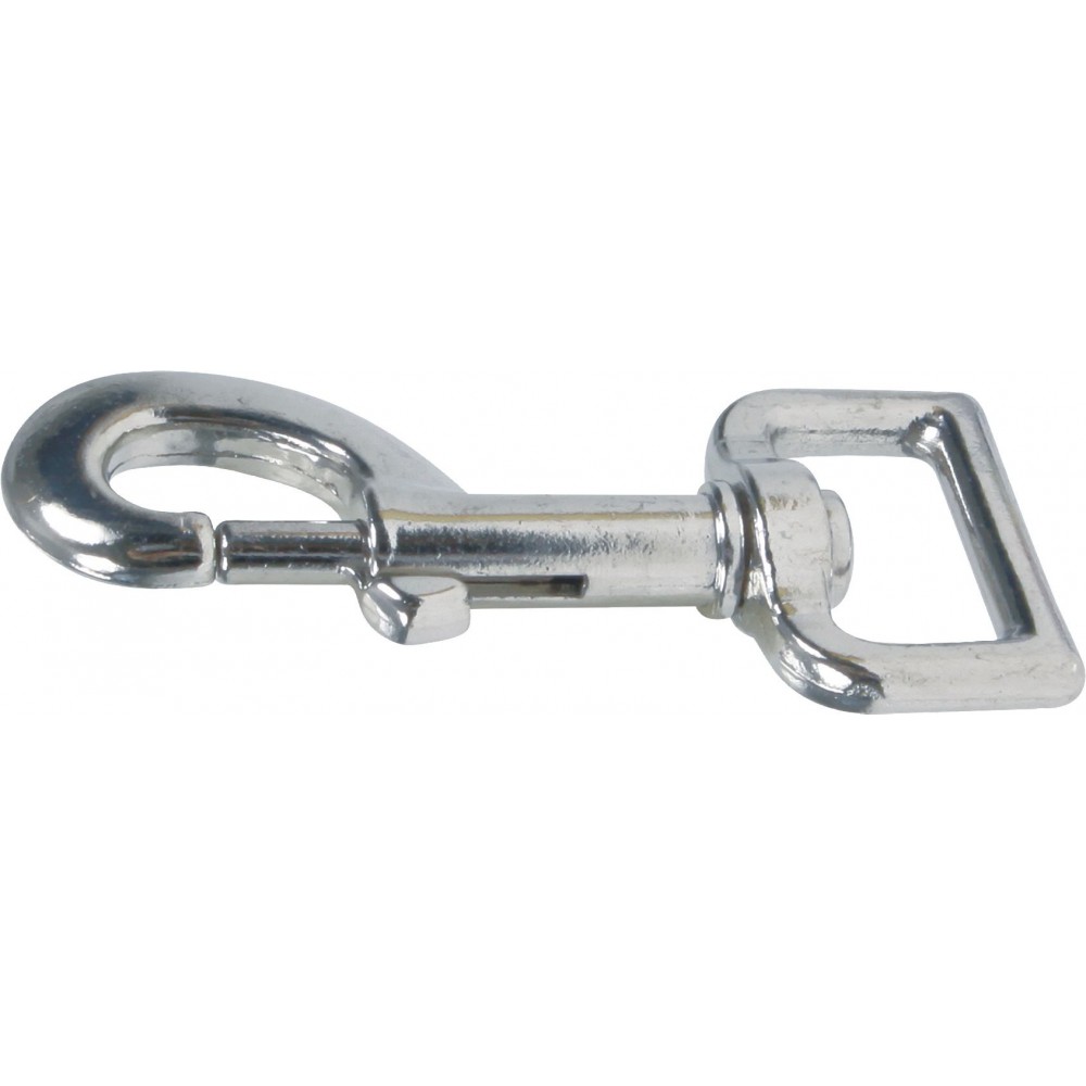 Головна особливість даного елементу - тривалий експлуатаційний період та надійність. Оснащений карабін з хромованої сталі міцною пружиною, яка не дозволяє повідку відстебнутися під час ривків, при цьому від дуже зручний у використанні, не вимагає прикладання зусиль для пристібання та відстібання повідка.