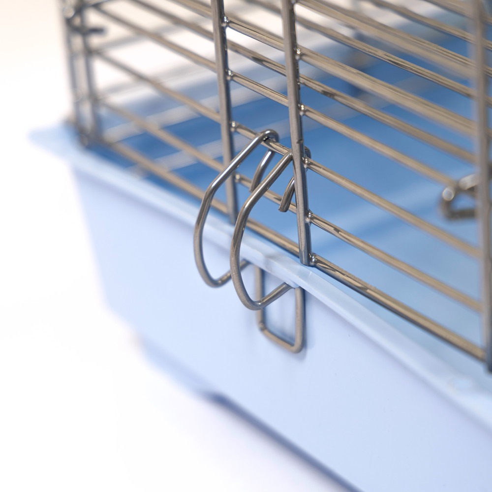 Колесо і піддон виготовлені з високоякісного безпечного первинного пластика. Надійна засувка на дверцятах - гарантія того, що ваш маленький улюбленець не втече. Округлий верх надає клітці витонченості та оригінальності.