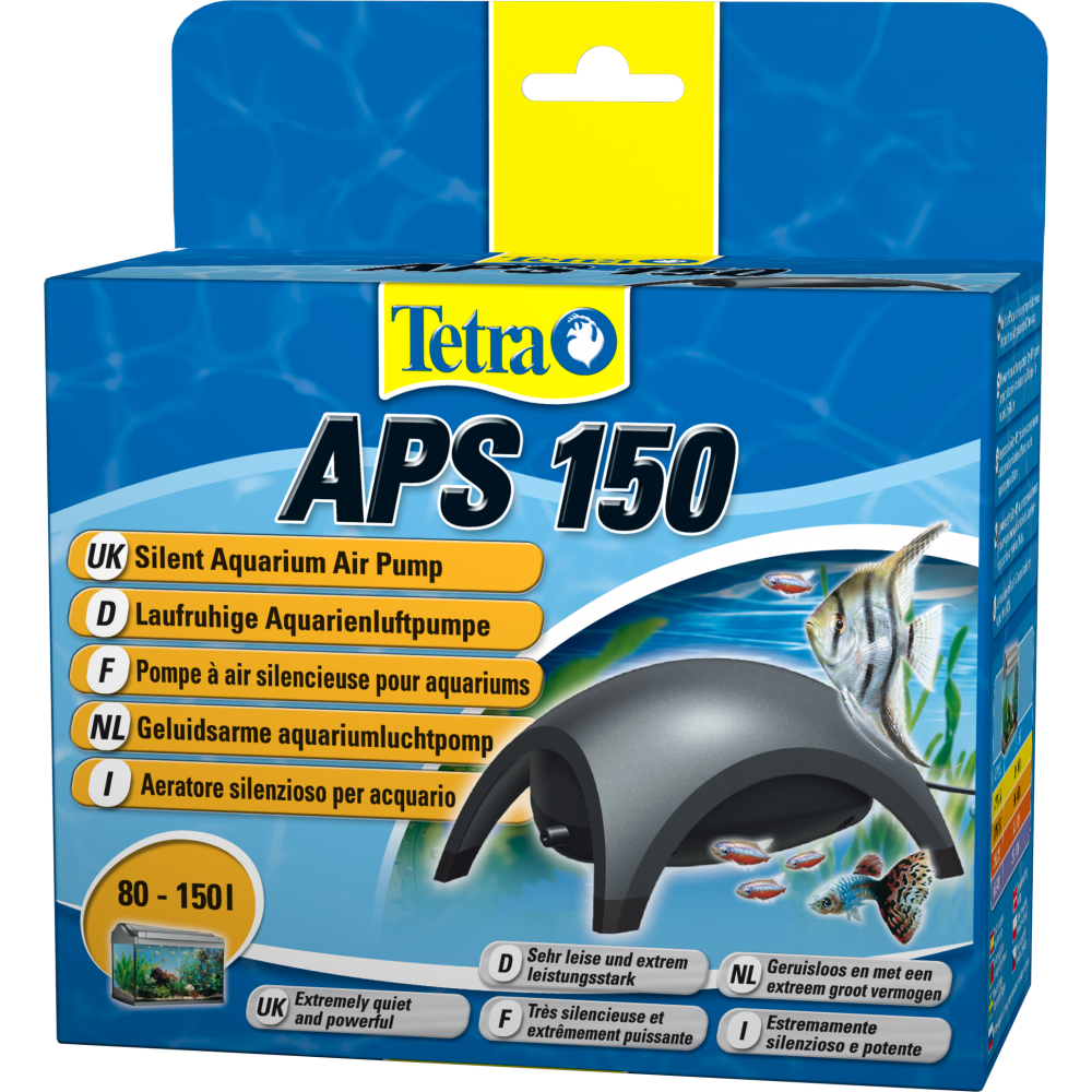 Компресор Tetratec APS 150 у чорному кольорі – це прилад, який забезпечує перекачування води через фільтр і загальну аерацію води в акваріумі. Підходить для великих акваріумів від 80 до 150 літрів. Встановлюється за межами акваріума, має два канали, здатен перекачувати до 150 літрів води на годину. Виконаний за сучасними технологіями, має низький рівень шуму та антивібраційний корпус. Дуже потужний та якісний. Має сертифікат якості міжнародного зразка. Любителі акваріумів по всьому світу довіряють та високо оцінюють цю продукцію бренду Тетра.