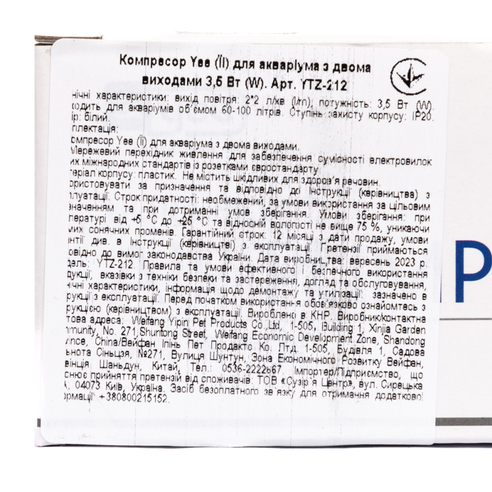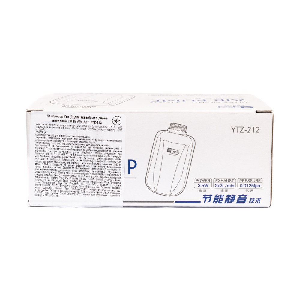 Тихий акваріумний компресор YEE. Знижений рівень шуму та збільшена ефективність за рахунок насосу з двостороннім симетричним рухом. Оновлений мідний механізм, стабільна робота, низьковольтний повільний потік, зменшення шуму.