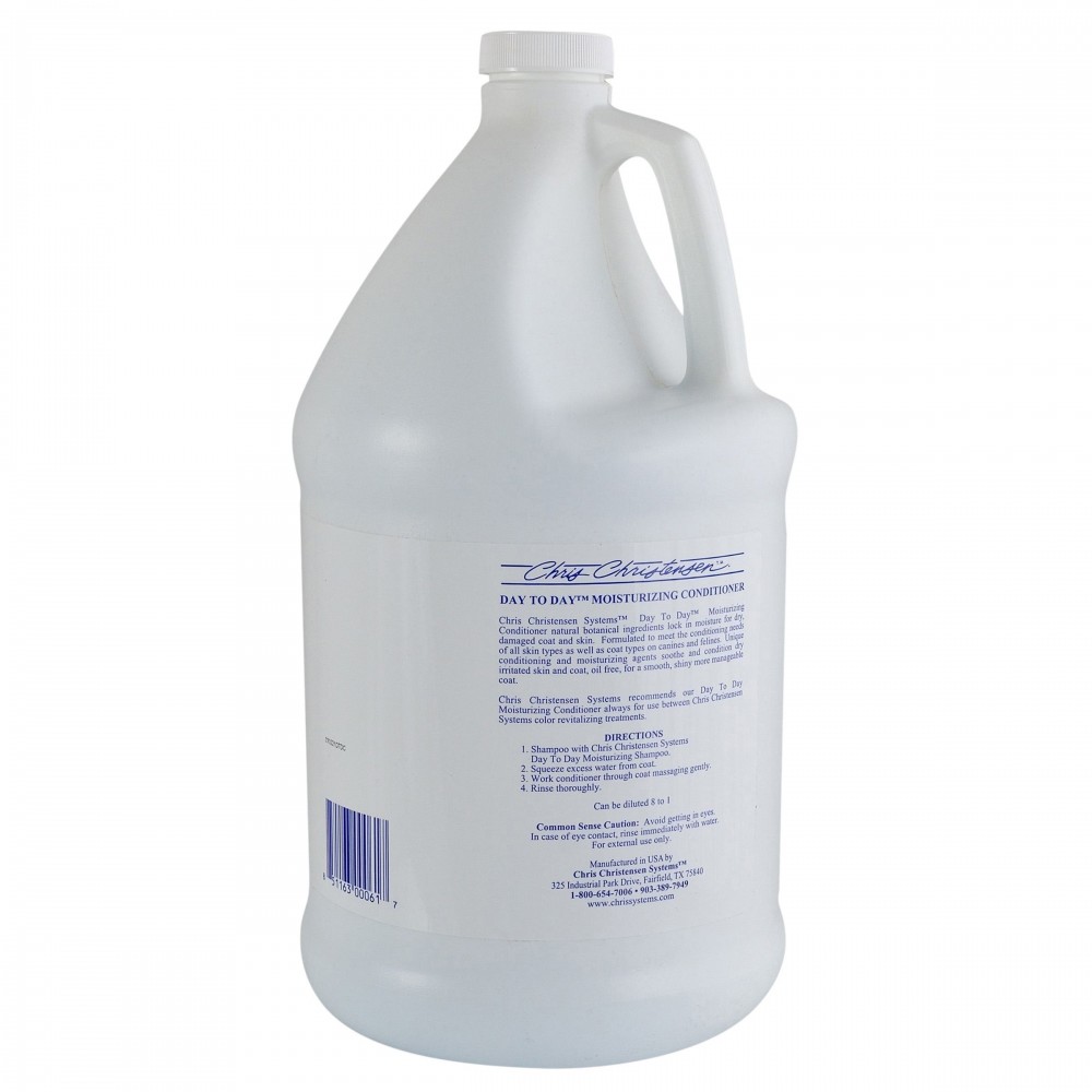Зволожуючий кондиціонер Chris Christensen «Day to Day» з натуральними інгредієнтами зберігає вологу в сухій, пошкодженій шерсті та шкірі. Розроблений спеціально для всіх типів шкіри та шерсті собак і котів. Сhris Christensen Systems рекомендує завжди застосовувати зволожуючий кондиціонер Day to Day між використанням відновлюючої фарби Сhris Christensen Systems.