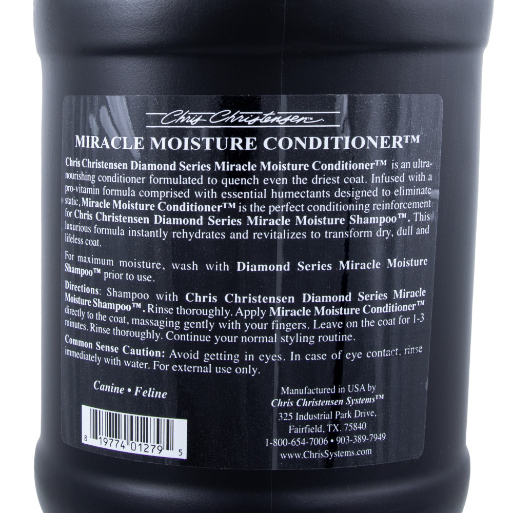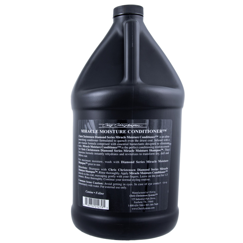 Кондиціонер Miracle Moisture Diamond Series від Chris Christensen для догляду за шерстю. Його багата вологою формула повертає тьмяній, сухій, неживій шерсті початковий блиск і текстуру.